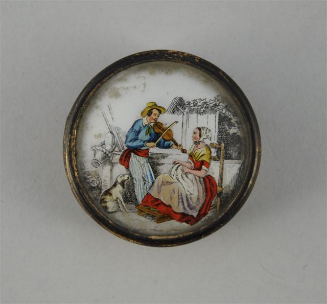 LOT comprenant trois BOITES en cartonnage, la première ronde à couvercle en fixé sous verre, la seconde rectangulaire en forme de malle, la troisième à couvercle orné d'une image pieuse (accidents)
