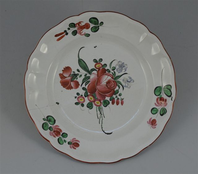 EST de la France. Plat rond en faïence à décor floral, aile chantournée.Diam. 33,5 cm (fêle)