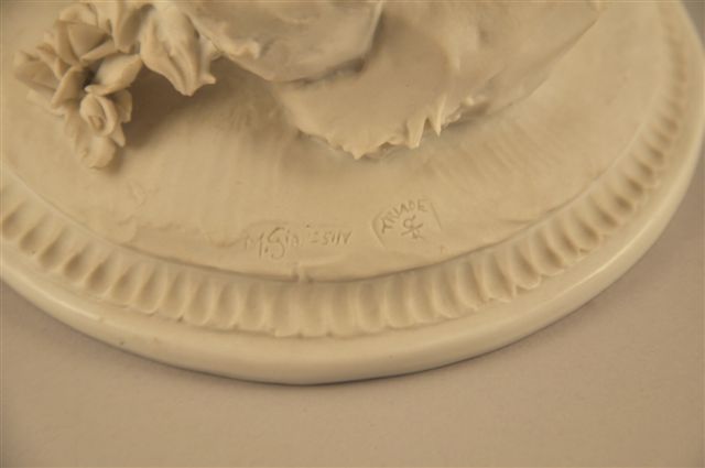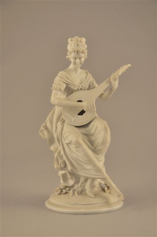 LIMOGES (?) JOUEUSE DE MANDOLINE en biscuit sculpté et signé sur la terrasse par M. GIANESIN pour TRIADE.