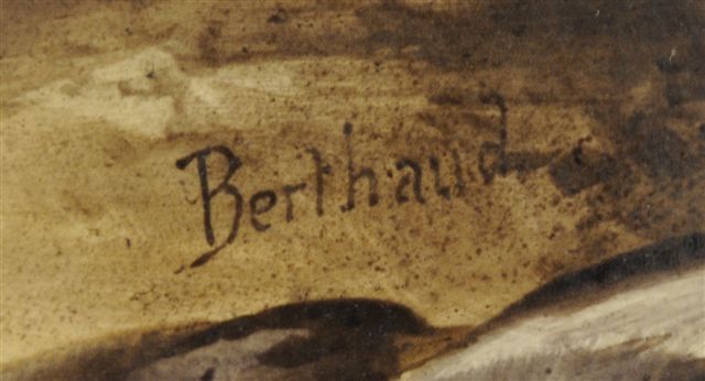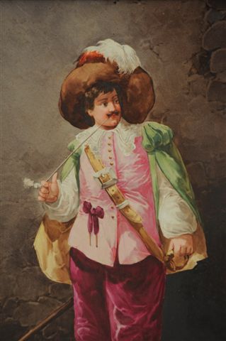 Portrait d'homme fumant la pipe. Peinture sur plaque de porcelaine polychrome, signée en bas à droite.
