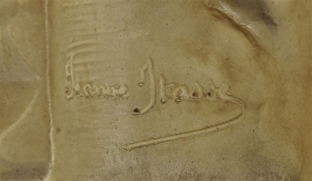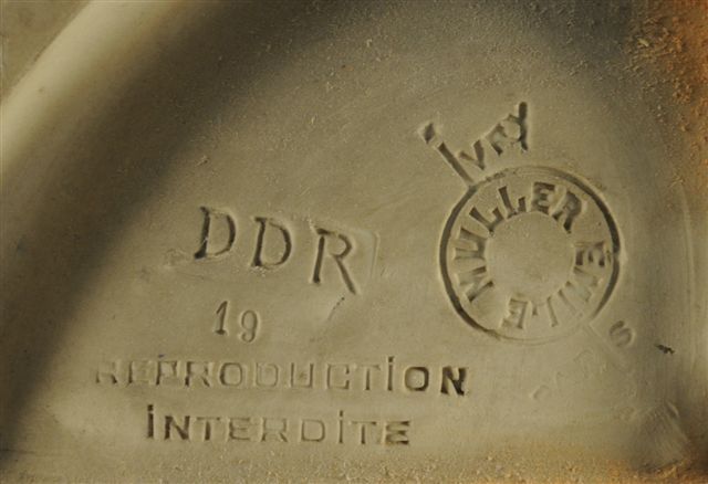 VARIA. Jeanne ITASSE (? - 1867). LA VIERGE ET LE CHRIST. Sculpture en grès reprenant la forme d'un autel de dévotion orné de vases fleuris et d'angelots. Porte sur le socle les inscriptions manuscrites en creux "Mater Dei" / "Grés Emile Muller". Au revers, un cachet rond en creux "Emile Muller" avec la marque "Ivry" et "reproduction interdite". Milieu du XIXème siècle. Haut. 48,5, Larg. 31 cm.
