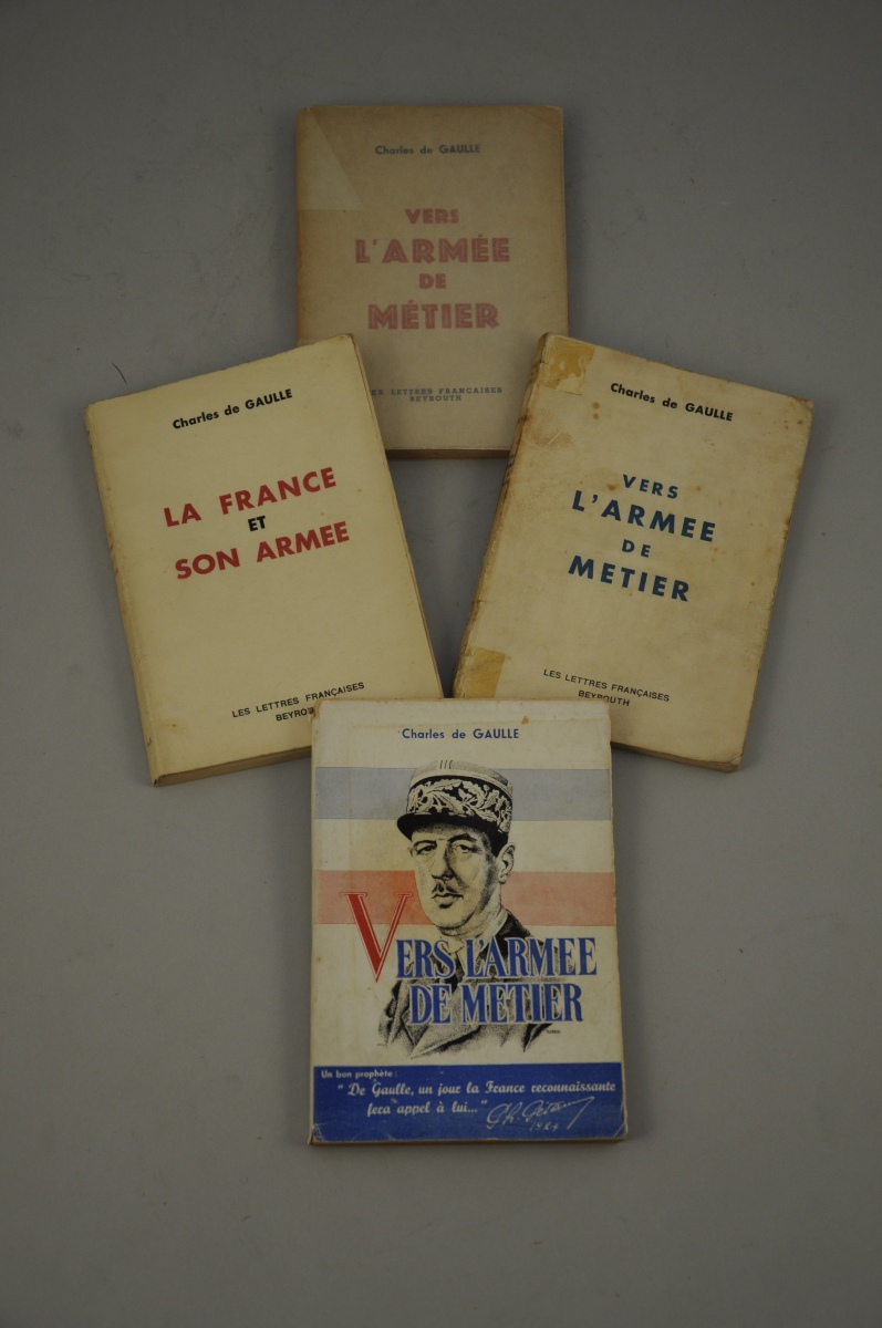 Charles de GAULLE, "La France et son armée", Les lettres françaises, Beyrouth, 1943 ; "Vers l'armée de métier", les lettres françaises de Beyrouth, 1943 (1 exemplaire), 1942 (2 exemplaires).