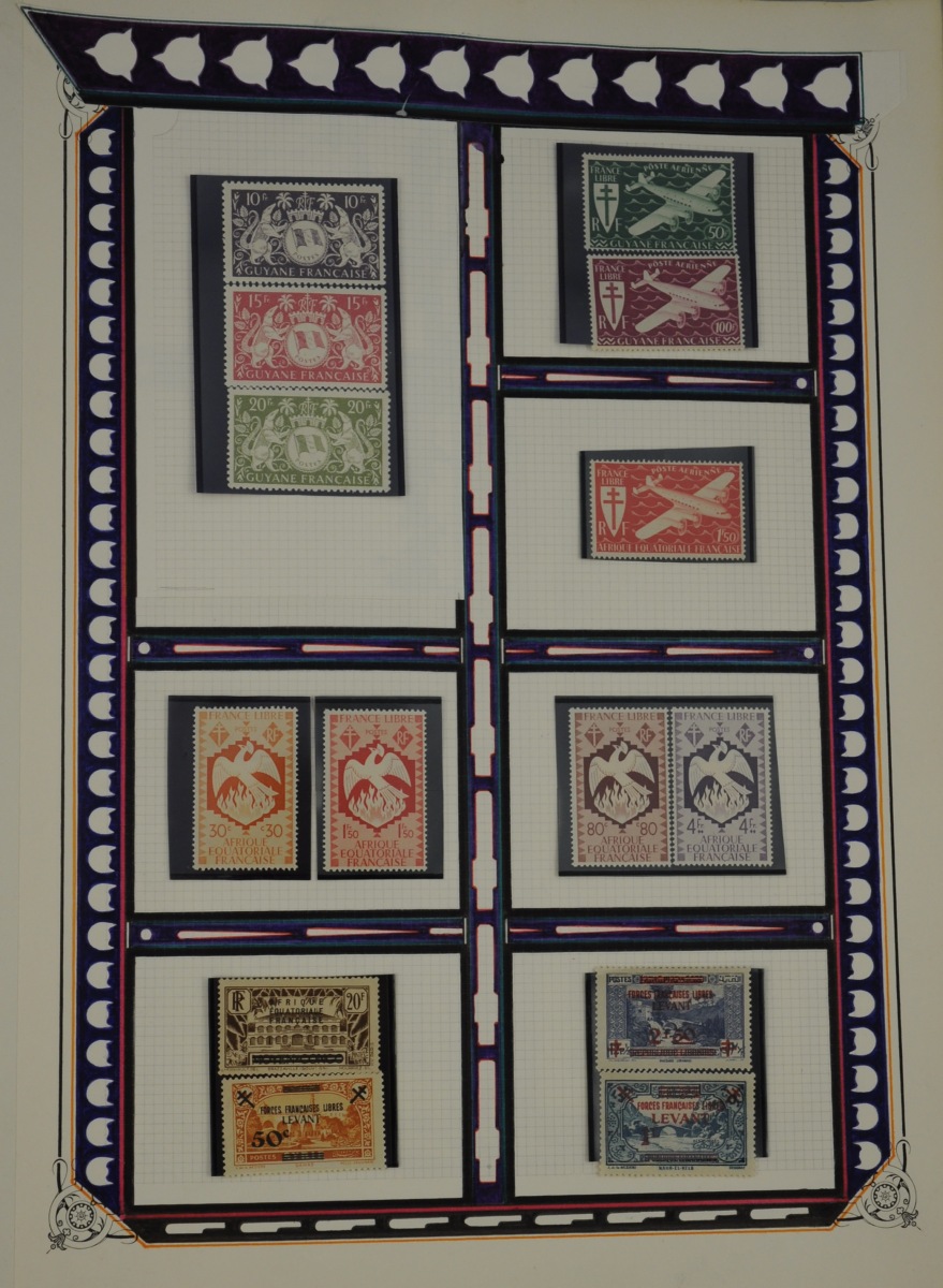 CLASSEUR PHILATÉLIQUE: LA FRANCE LIBRE. 26 feuillets et pochettes comprenant des timbre à l'unité et en planches.