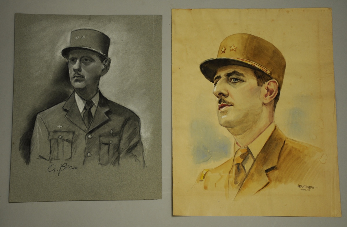 LE GÉNÉRAL DE GAULLE AU KÉPI, deux dessins: