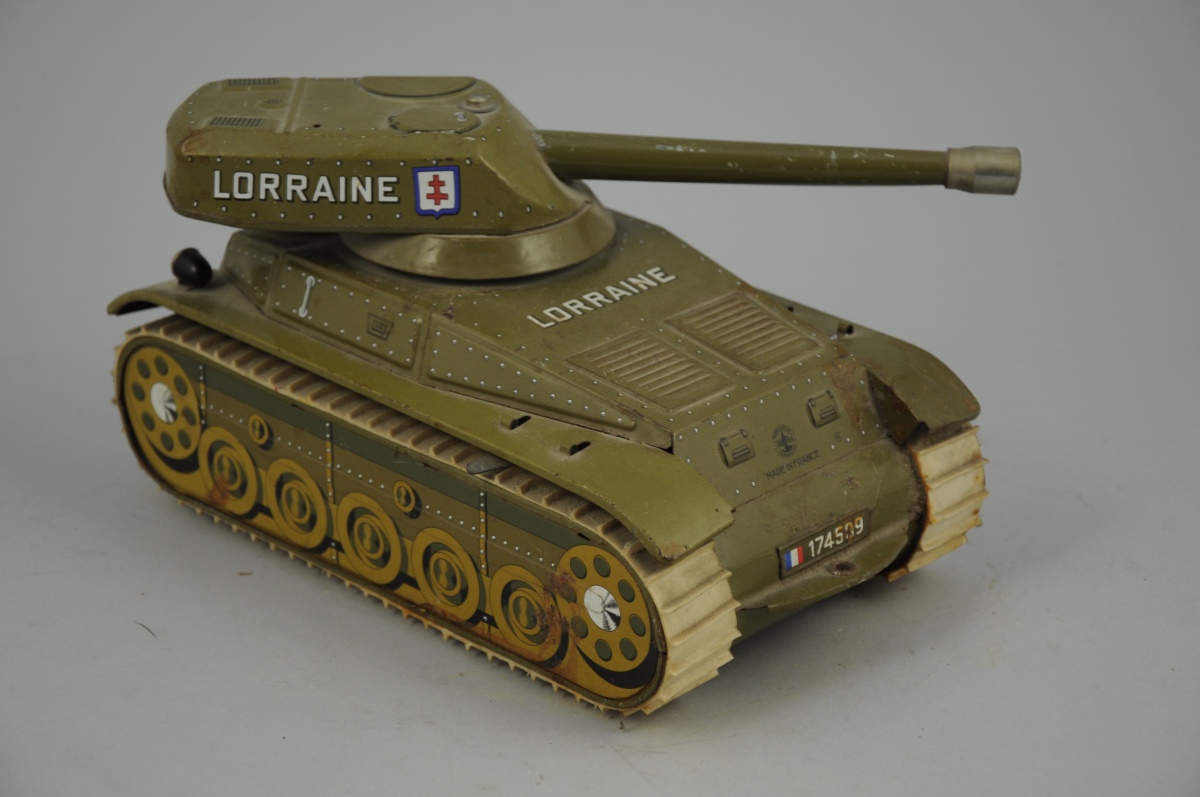 JOUSTRA. Char Lorraine n°174509. Jouet à pile en tôle et plastique. Haut. 13, Larg. 14, Long. 26 cm.