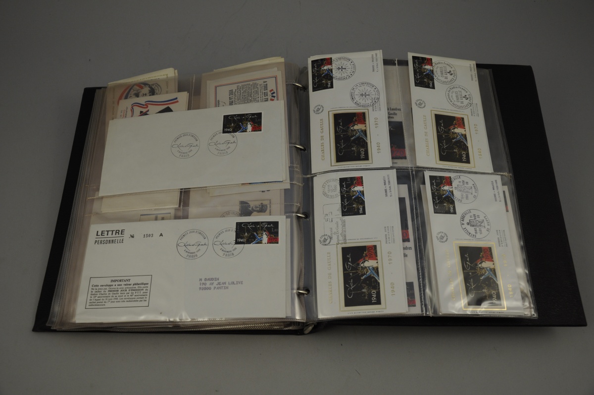CLASSEUR PHILATÉLIQUES: IN MEMORIAM. 21 pochettes comprenant enveloppes premier jour et documents, etc.