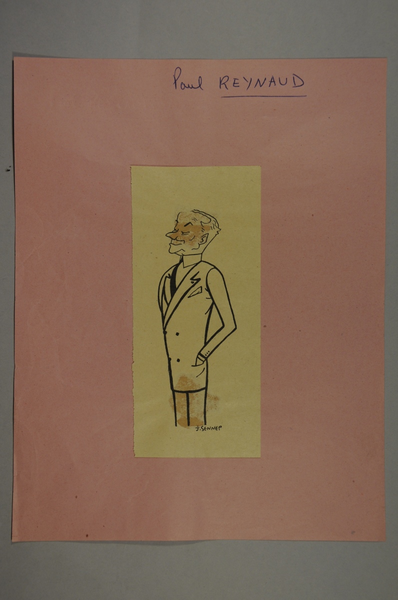 SENNEP. Paul Reynaud. Dessin original à l'encre. Signé. 16 x 7 cm.