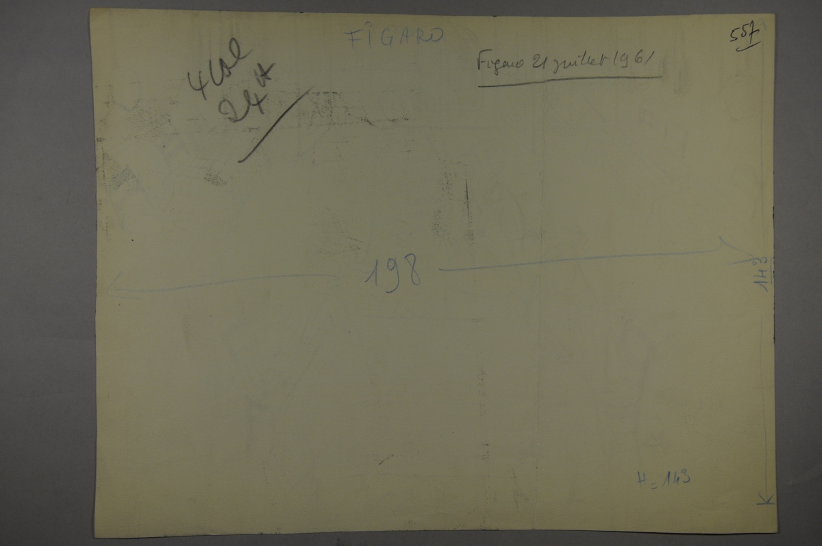 SENNEP. "Le relais gastronomique". de Gaulle, Eisenhower, Kennedy, Mac Millan. Dessin original à l'encre pour le Figaro du 24 juillet 1961. Signé et titré. 27 x 36 cm.