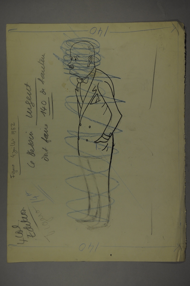 SENNEP. "Un village de toile? - Non. Pour le mois de juillet, nous avons installé un village de papier." Interpellation, discours... Pompidou et Chaban Delmas. Dessin original à l'encre pour le Figaro du 4 juillet 1962. Signé et légendé. 27,5 x 37 cm.