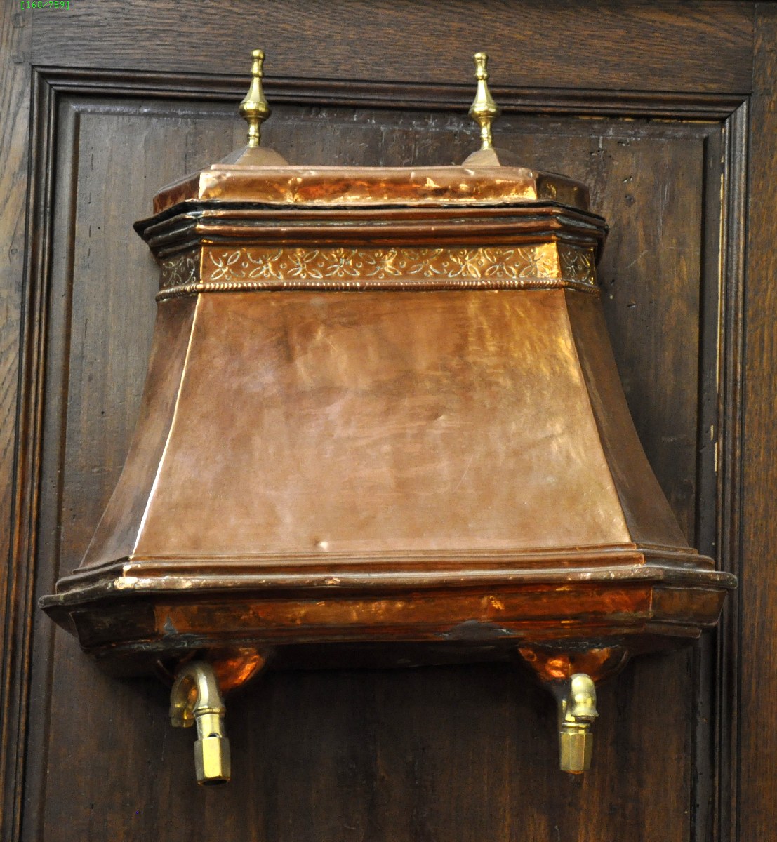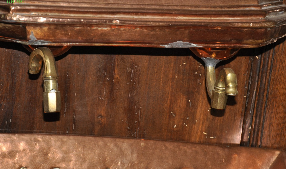 Réserve d'eau: Haut. 53, Larg. 48, Prof. 23 cm. (l'un des robinets ressoudé et légèrement différent)