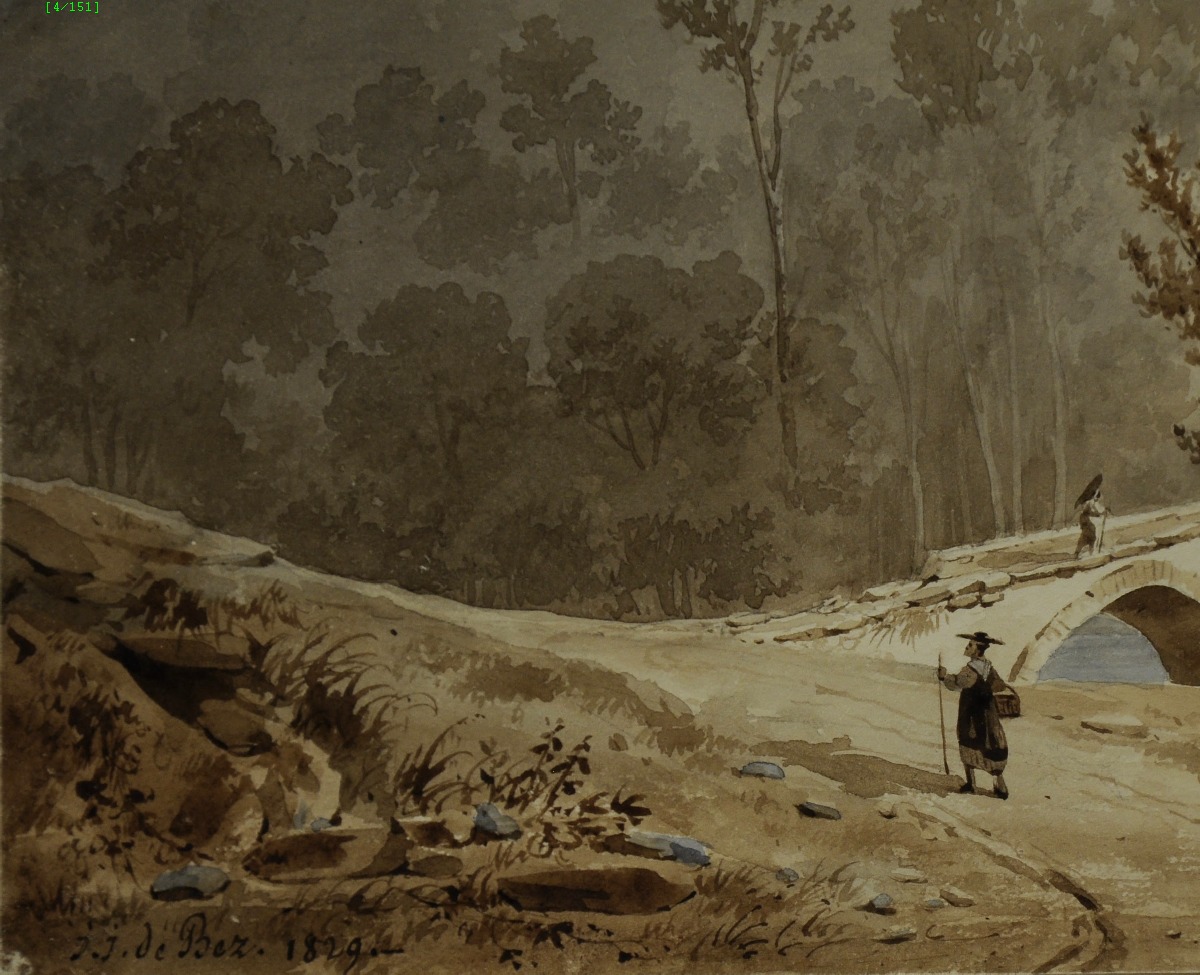 Aquarelle signée et datée 1829, contrecollée et titrée sur le carton.