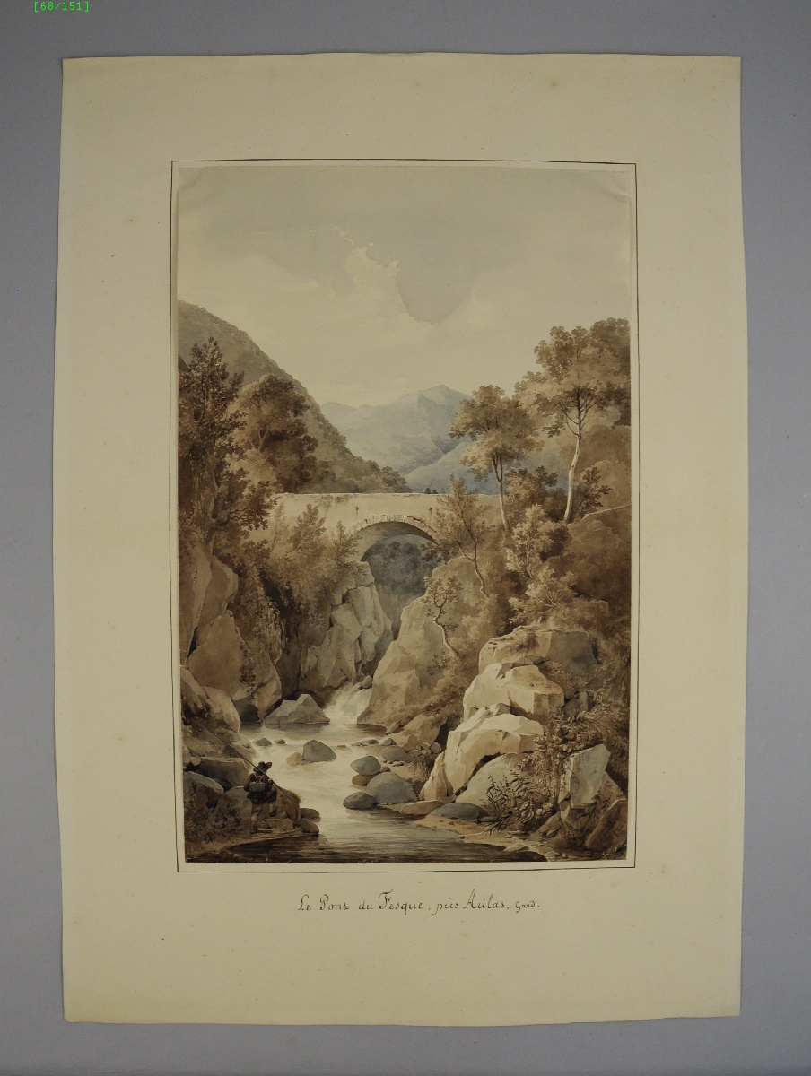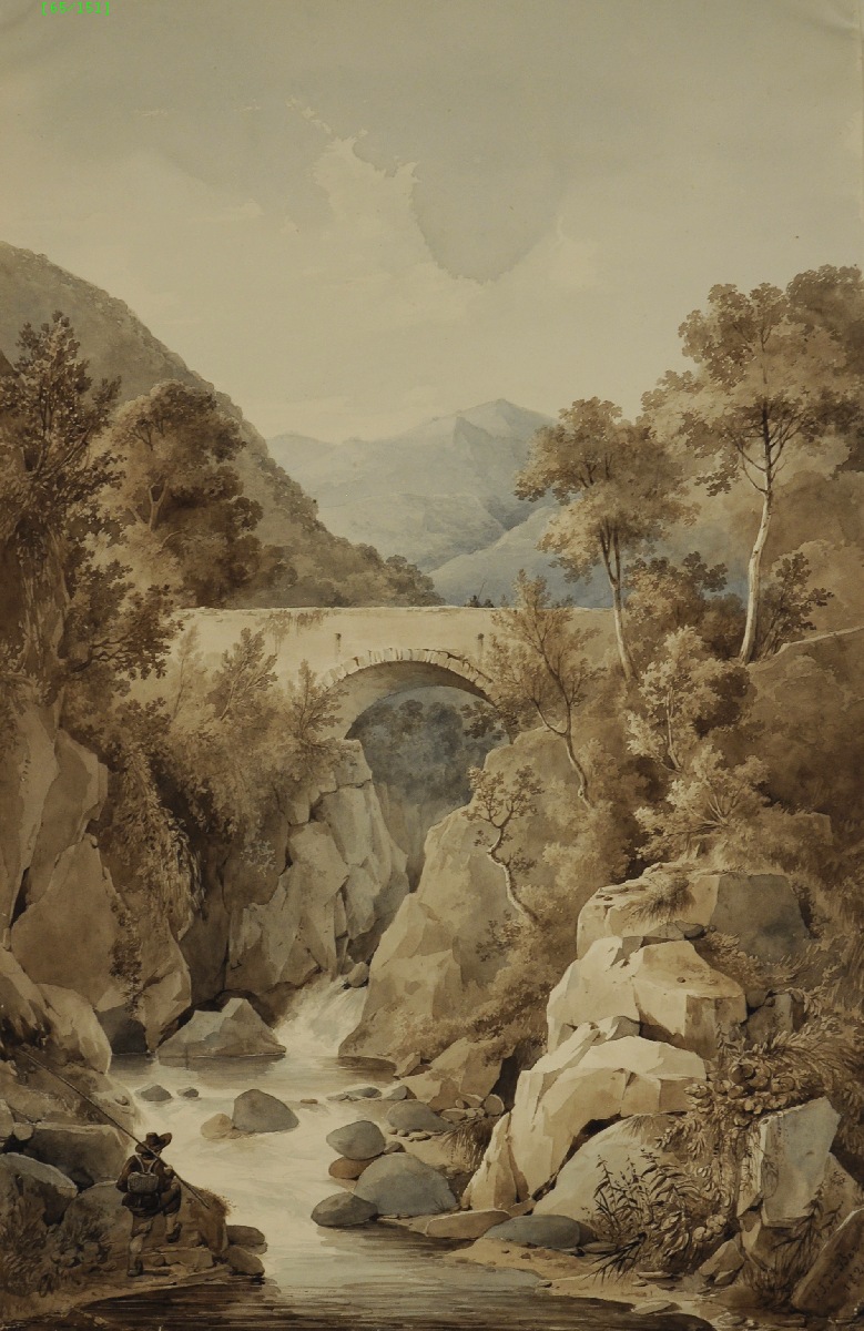 Aquarelle signée et datée 1824, contrecollée et titrée sur une feuille.