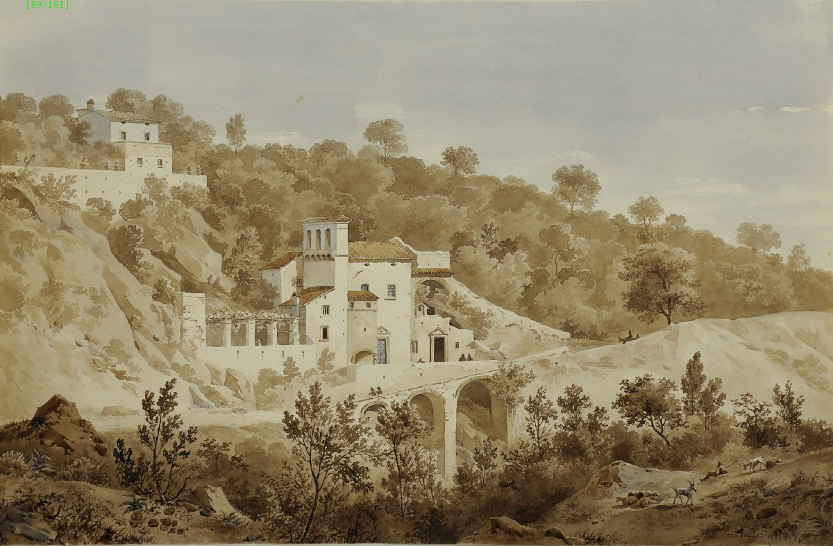 Aquarelle signée et datée 1828, contrecollée et titrée sur le carton.