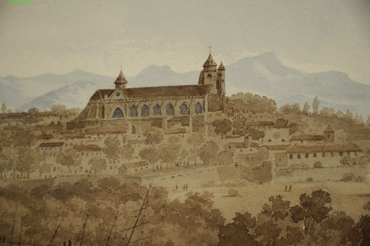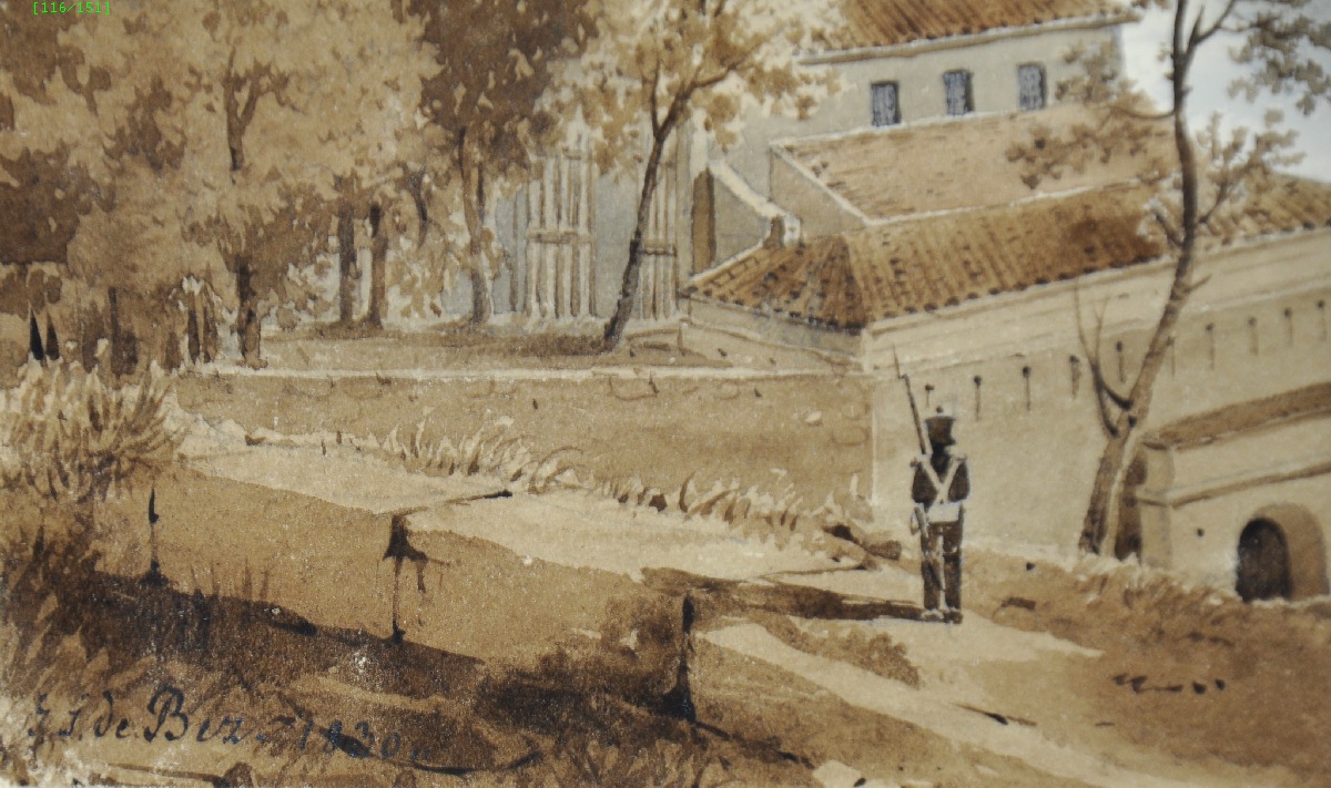 Aquarelle signée et datée 1830, contrecollée et titrée sur le carton.
