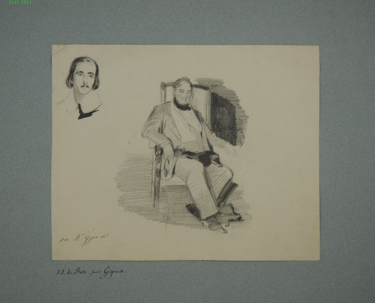 Étude, portrait de Jean Joseph BASTIÉ de BEZ. Dans l'angle supérieur gauche, étude d'une tête d'homme.