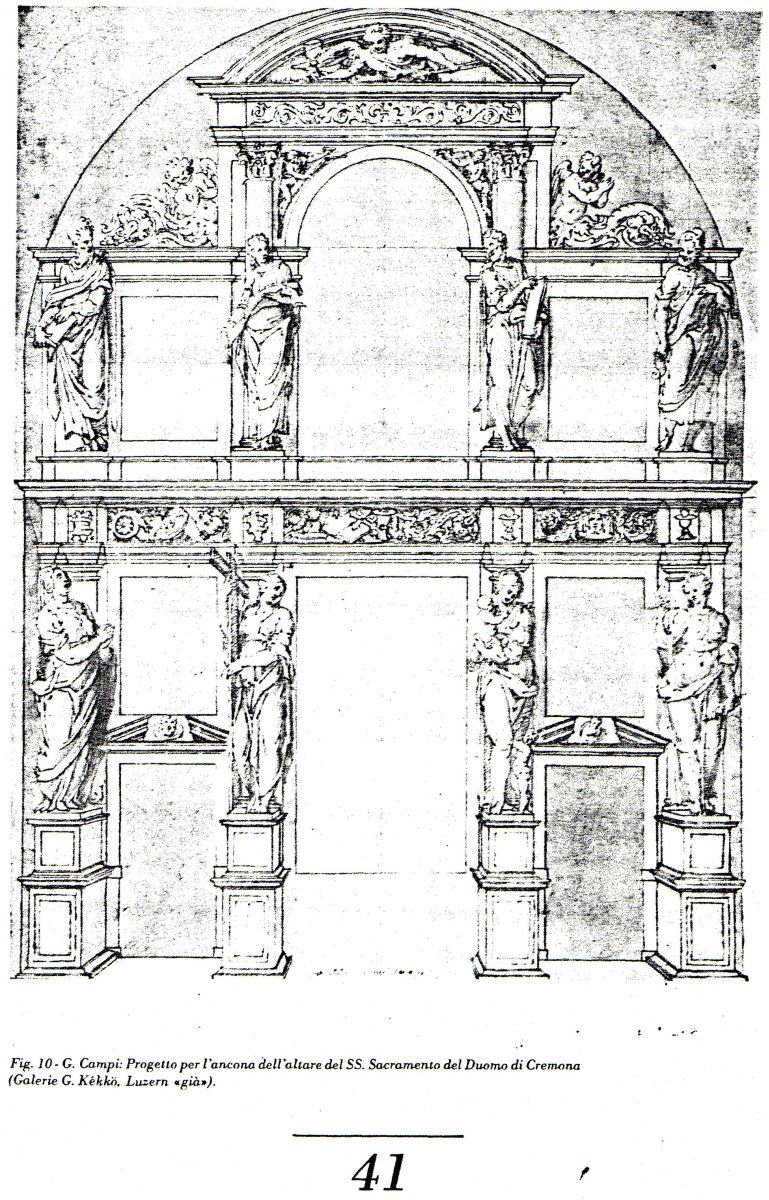 Milan, n.c. 467) présentent au niveau du premier étage des statues dont ce dessin est manifestement une étude de détail et que les spécialistes de Campi s'accordent à dater entre 1541 et 1547.
