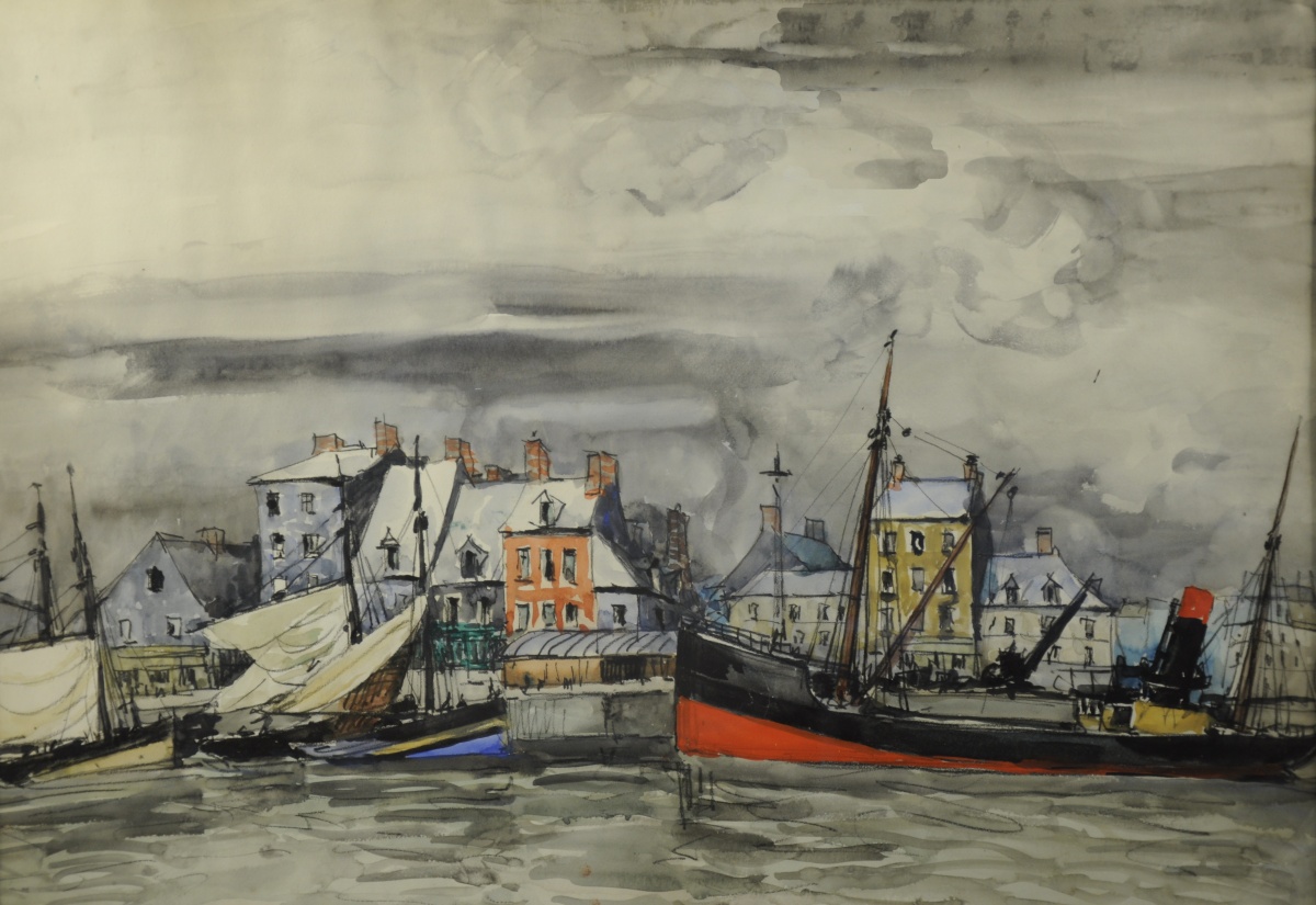 Aquarelle gouachée, titrée et signée en bas à gauche.
