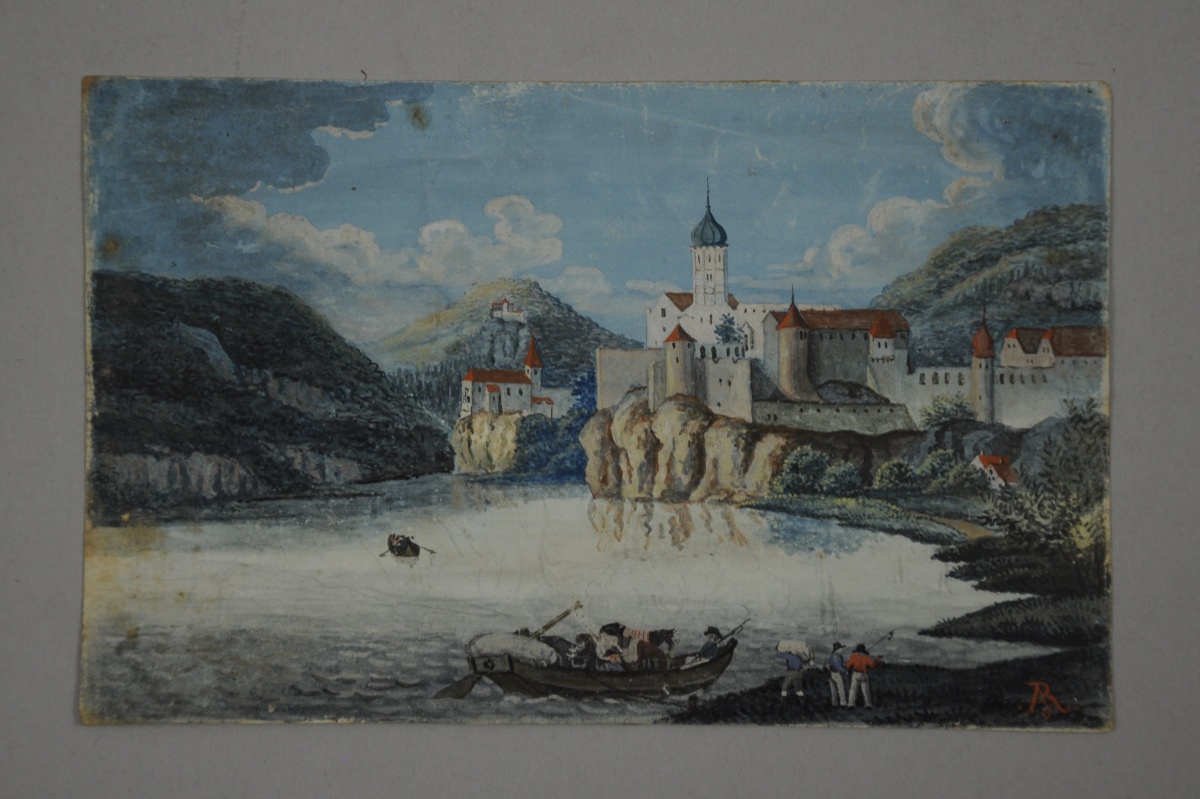 Aquarelle gouachée, monogrammée AR en bas à droite.