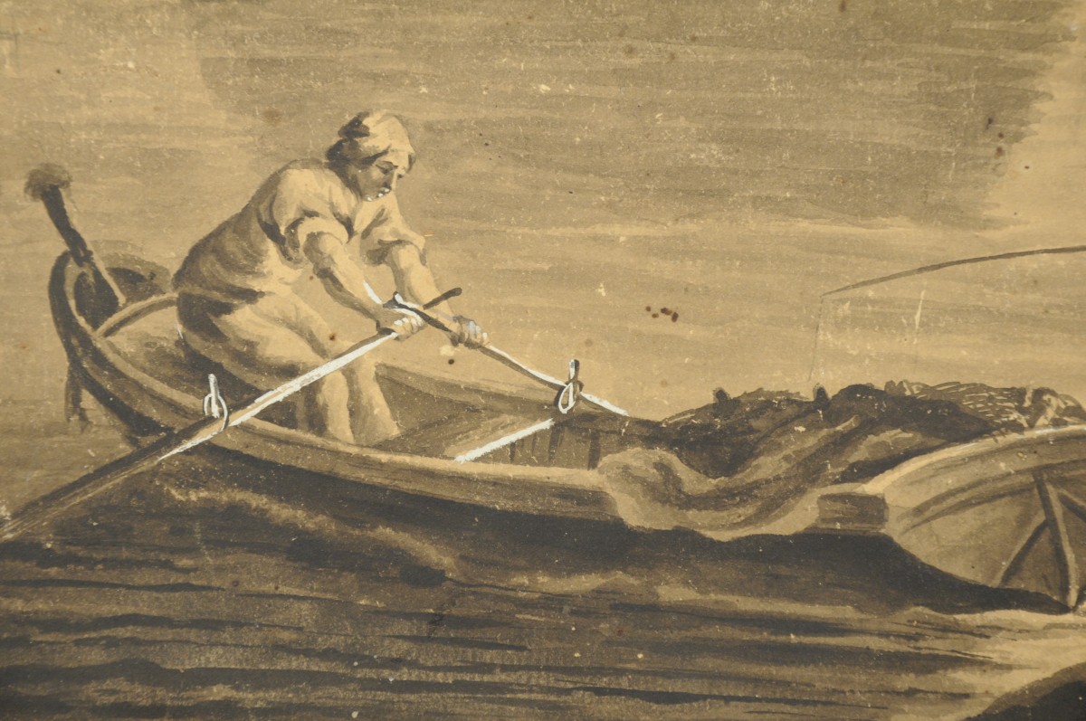 Lavis gris et noir et rehauts de blanc. Porte une signature en bas à gauche Teulaire (?) ayné Fecit.