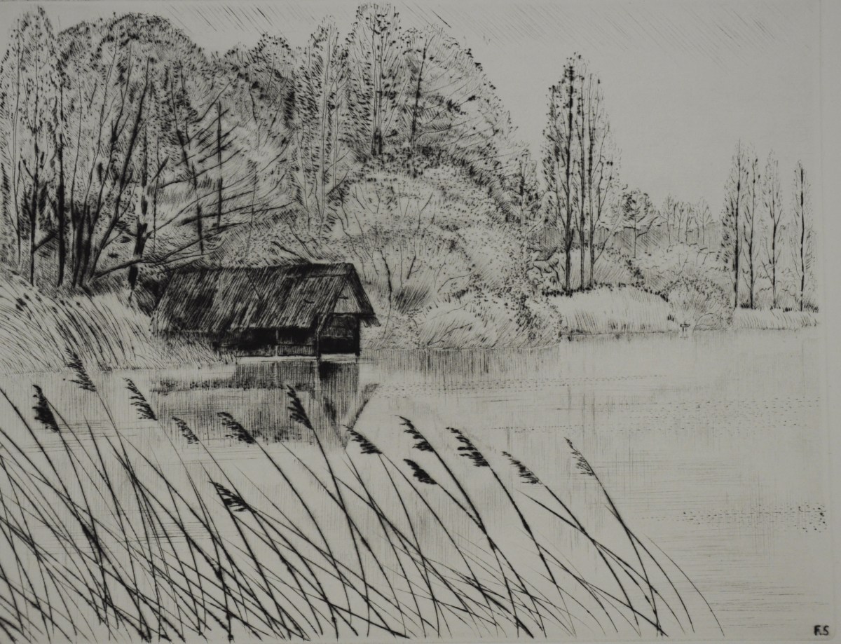"Sologne. Les pins au bord de l'étang" et "Sologne. Garage à bateau au bord de l'étang".