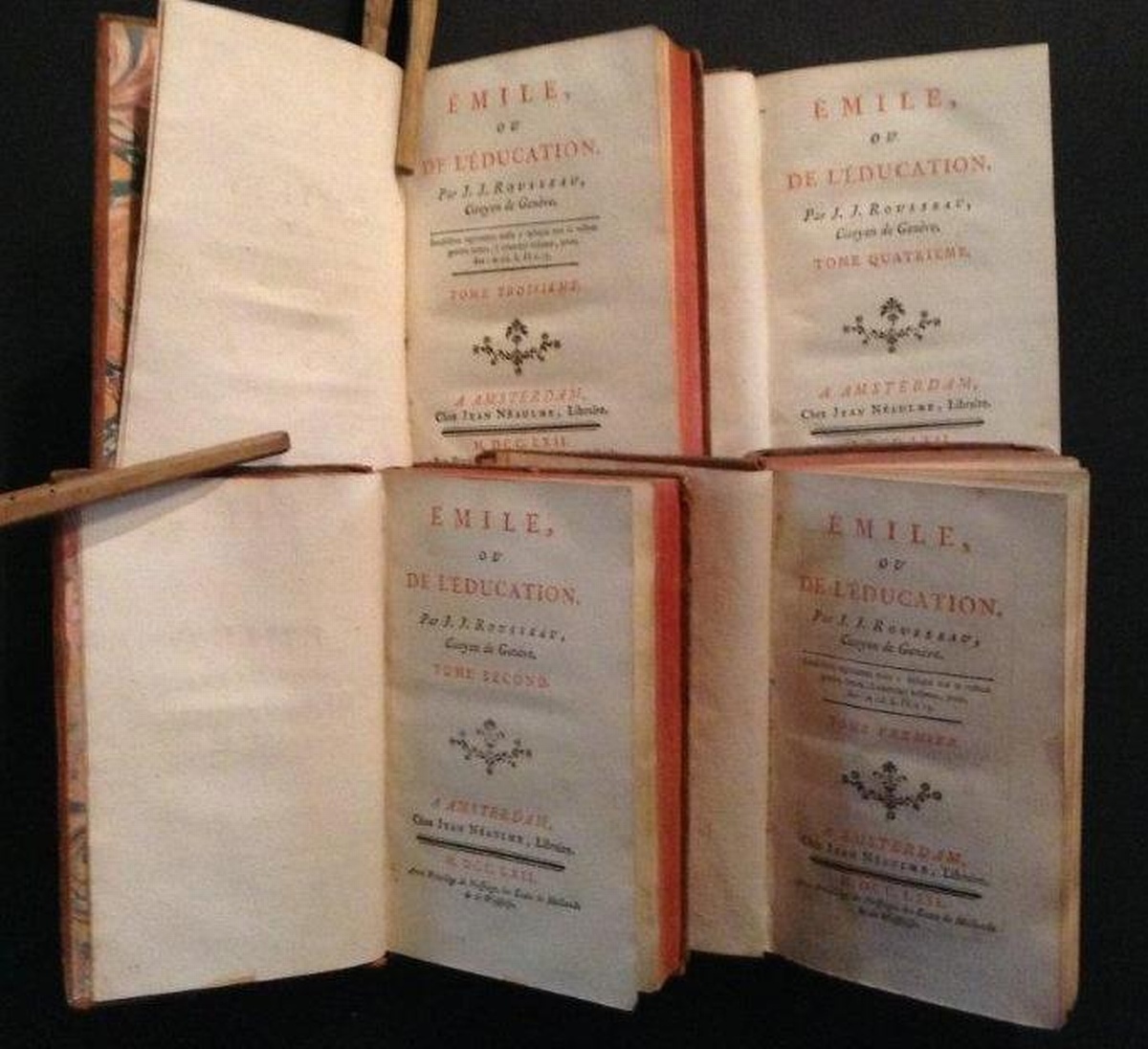 En 1762 sont publiées au moins 6 éditions in-12 ou in-8, à l'adresse (parfois fausse) d'Amsterdam. La collation des 4 tomes de cet exemplaire correspond à l'édition Néaulme que Mc Eachern (Bibliography of the writings of JJR, pages 16-17) considère comme imprimée avant -mais publiée après- une édition in-8 imprimée à Paris pour Duchesne, à la fausse adresse d'Amsterdam, qui devrait être tenue comme la véritable édition originale. (N'est pas citée par Tchemerzine, qui donne ... une autre édition in-12 comme originale, et une édition in-8 comme première édition publiée en Hollande).