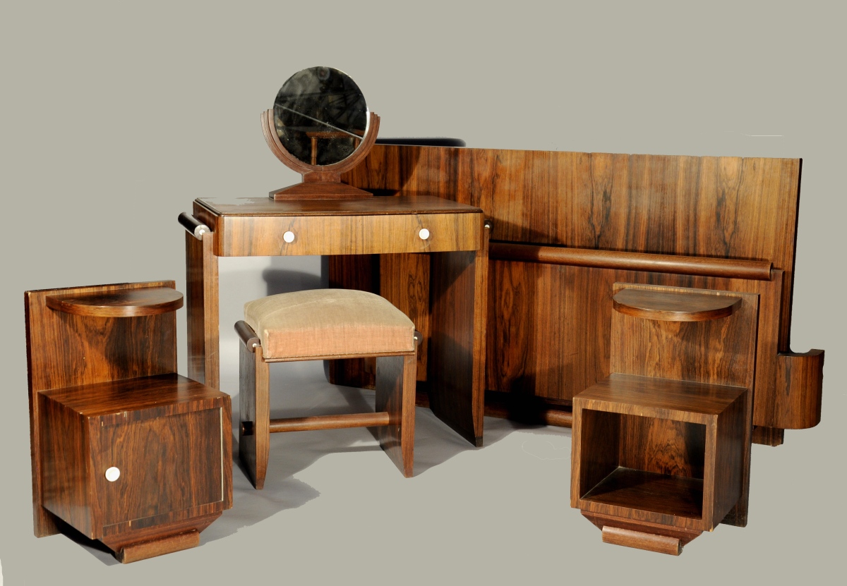 MAJORELLE. Mobilier de CHAMBRE À COUCHER en ébène de Macassar/palissandre des Indes et ivoire - composé de six éléments: