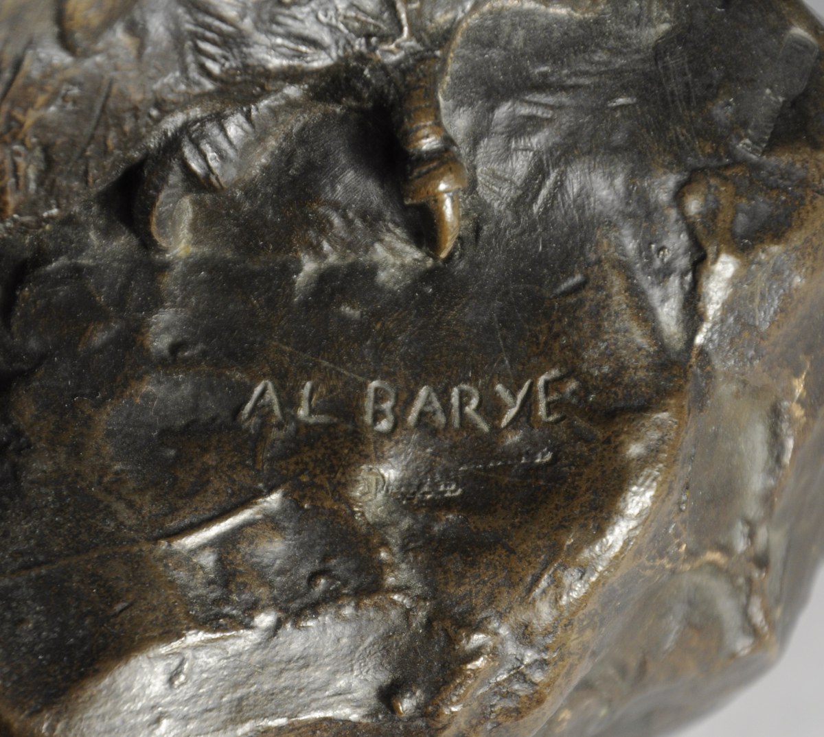 Bronze à patine brune, signé "AL BARYE" sur le rocher.