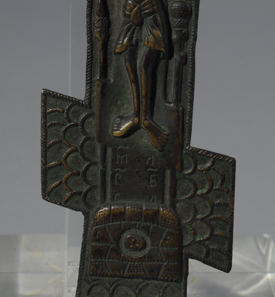 CRUCIFIX en bronze. Travail russe ancien. Haut. 19,5 Larg. 11,5 cm.