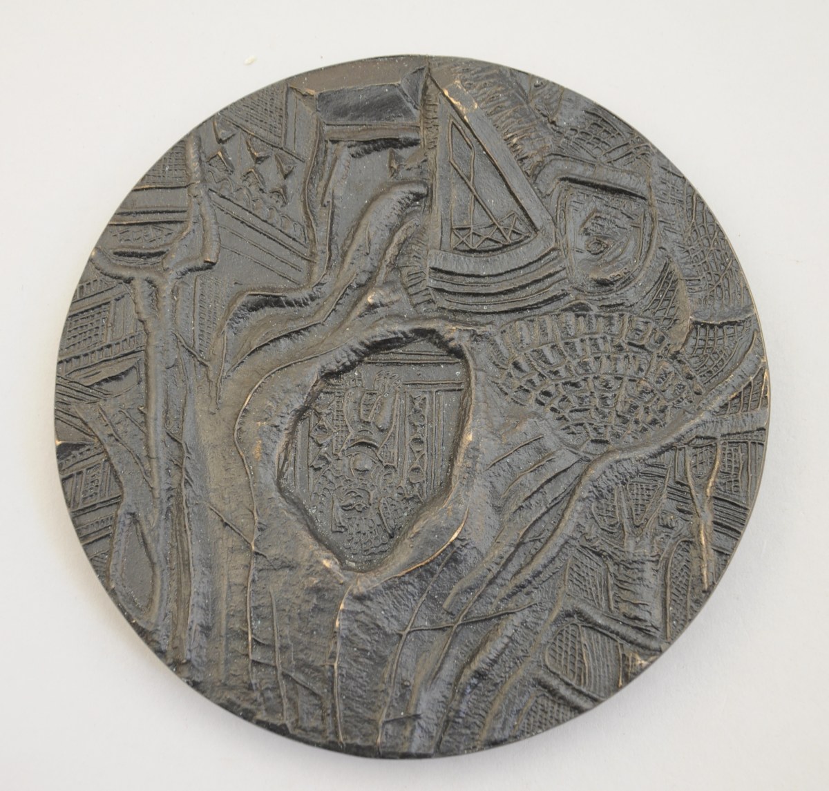 ARTISTES. MÉDAILLE en bronze à patine noire.