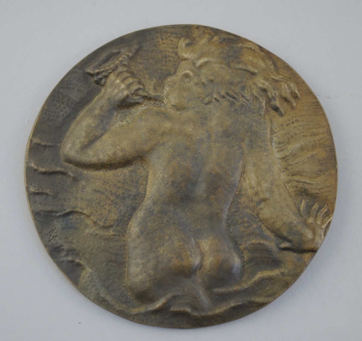 MUSIQUE. MÉDAILLE en bronze à l'effigie de Claude Debussy. Le revers figurant Triton soufflant dans sa conque. Signée Raymond JOLY (graveur général de la Monnaie de Paris de 1958 à 1974). Poinçon de la Monnaie de Paris et "EE / 250".