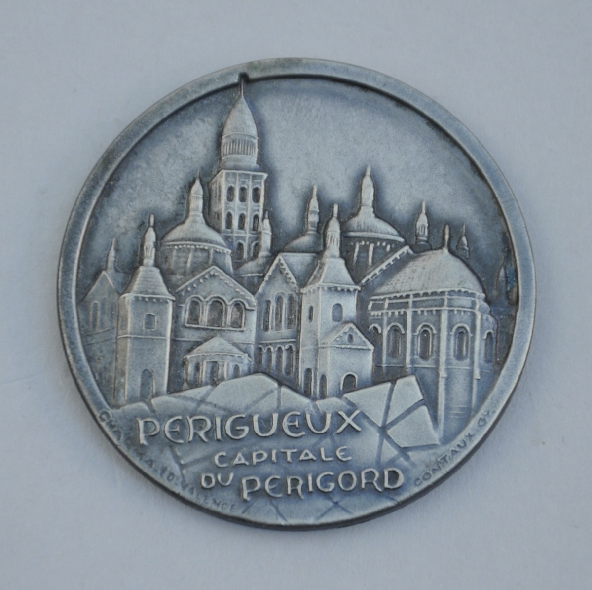 RELIGION. MÉDAILLE en métal patiné figurant, à l'avers, la cathédrale Saint-Front de Périgueux avec l'inscription "Périgueux / capitale du Périgord". Revers vierge. XXème. Diam. 5 cm.