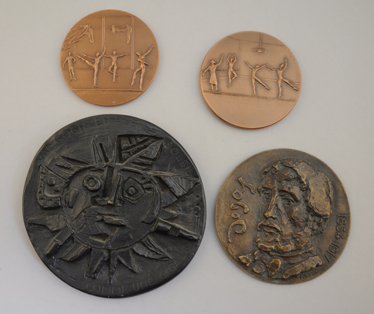 [ARTISTES IMPRESSIONISTES]. 4 médailles commémoratives: "Degas", par Revol; Danseuses, par Hubert Yencesse; Danseuses au repos, par Yencesse (marquée HY); et "Van Gogh en plein soleil comme une cigale".