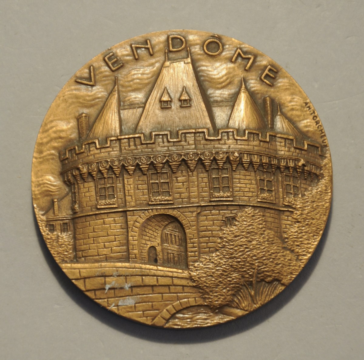 VENDOME. Une médaille commémorative de la ville de Vendôme avec les figures gravées de Ronsard, Balzac et Rochambeau, par Torcheux. 6 cm diam.