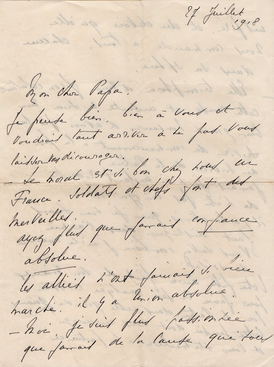 ) les alliés n'ont jamais si bien marché. Il y a union absolue. Moi je suis plus passionnée que jamais de la cause qui vous inspire et du devoir qu'elle vous commande à tous, chacun dans sa sphère (