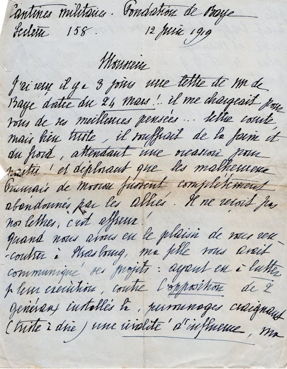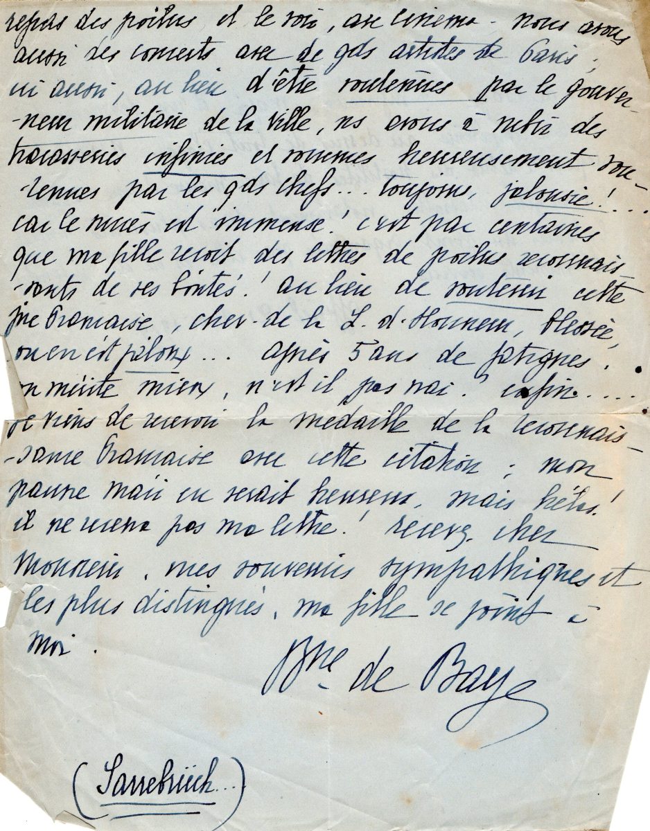 Joint L.A.S. de la baronne de BAYE datée de Sarrebruck du 12 juin 1919: "