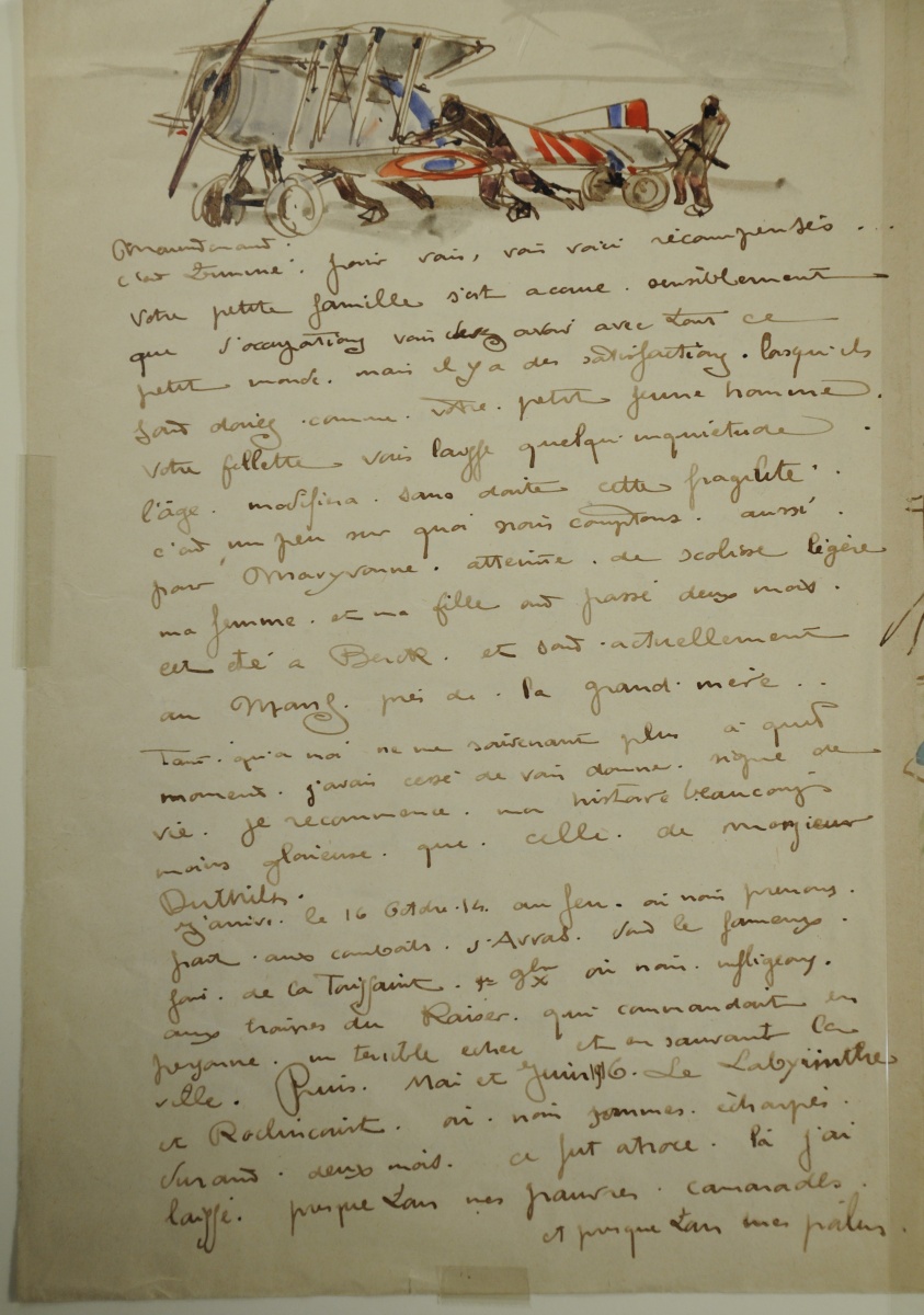 Mathurin Méheut envoie des nouvelles du Front: "J'arrive le 16 octobre 1914 au feu où nous prenons part aux combats d'Arras. Durant le fameux jour de la Toussaint où nous infligeons aux troupes du Kaiser qui commandait un terrible échec."