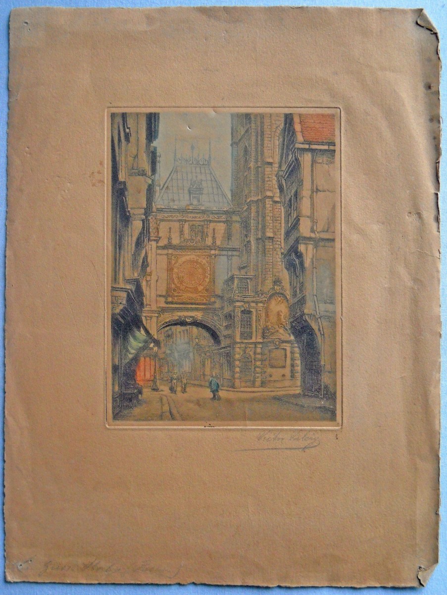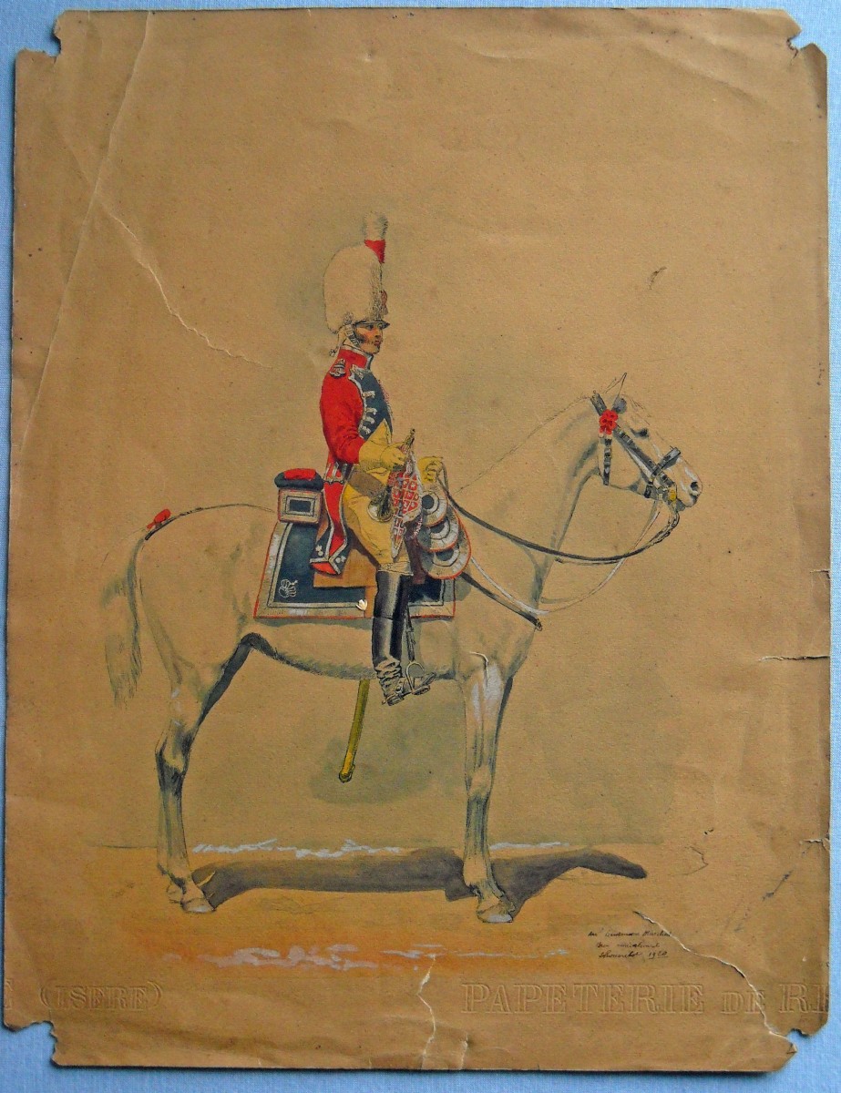 Lot de 14 documents et 25 clichés photographiques relatifs au déroulement de carrière d'Ernest Louis Adrien MARCHAL, dont: États de service durant la période 1914-1919 - Tapuscrit de 5 pages d'historiettes racontées par un témoin oculaire durant la guerre 1914-1918 - Carte des préparations de la guerre au cours de l'année 1917 éditée par L'Ouest-Eclair - Diplômes d'officier et de commandeur à l'ordre de Nichan Iftikhar de Tunisie, 1930 et 1945 - 16 clichés photographiques dont 14 vues aériennes des villes françaises et belges situées en zone de front (Bergues, Ypres, Dunkerque, Dixmude, etc), 1917-1918 - 9 photos de famille dont portrait du lieutenant Marchal - Vues de Rouen, paire d'eau-forte à rehauts de couleurs, signées " Victor Valéry " en bas à droite, , 34 x 25,5 cm - Portrait en pied d'un poilu, dessin encre et aquarelle par Charles Rocher de Gérigné (1890-1962), signé et daté 1931 en bas à droite, 27 x 19 cm - Portrait en buste d'une vieille femme à la coiffe , dessin à l'encre et crayon par Charles Rocher de Gérigné (1890-1962), signé et daté 1930 en bas à gauche, 32 x 24 cm - Cavalier de l'armée britannique, dessin à l'encre et aquarelle par " E. Rousselot " dédicacé et daté 1920 en bas à droite, 32,5 x 25,5 cm (acctds) - Soldat de l'armée française du XVIIe siècle, dessin à l'encre et aquarelle par " P. Martin ", dédicacé et daté Paris 1923 en bas à gauche, 37,5 x 28 cm (accdts).