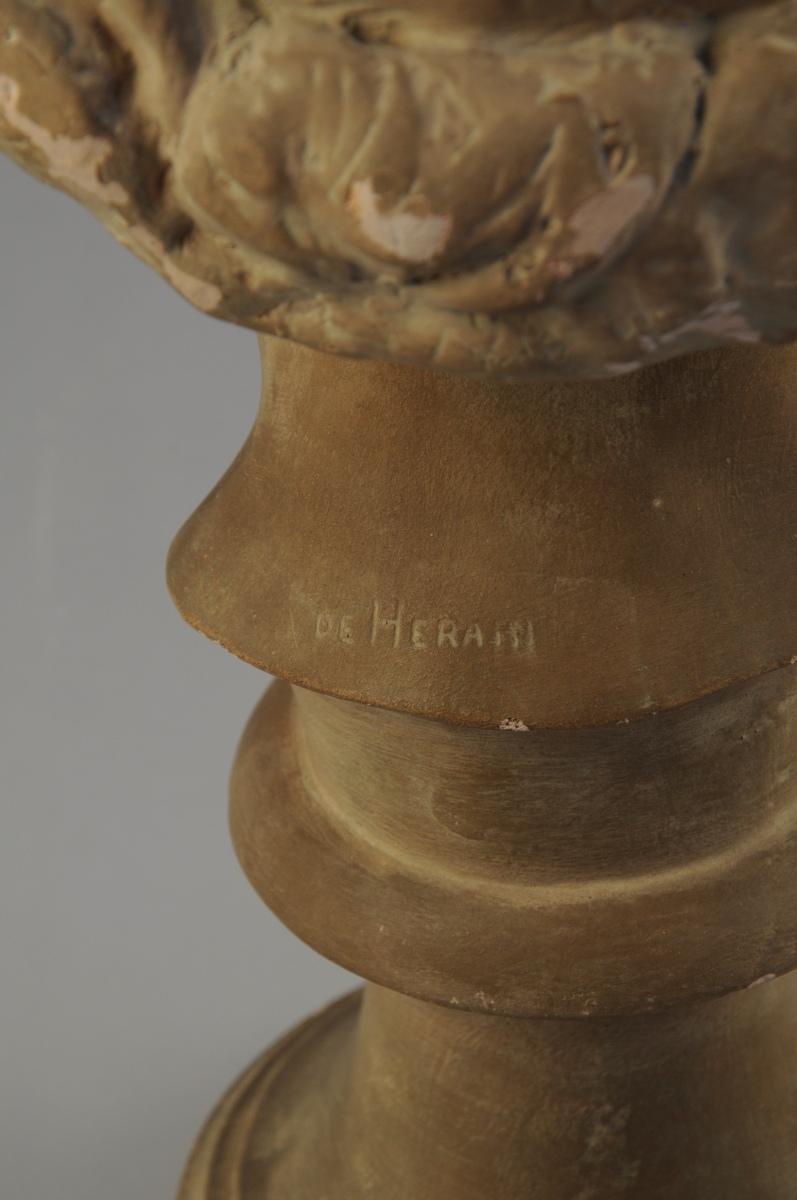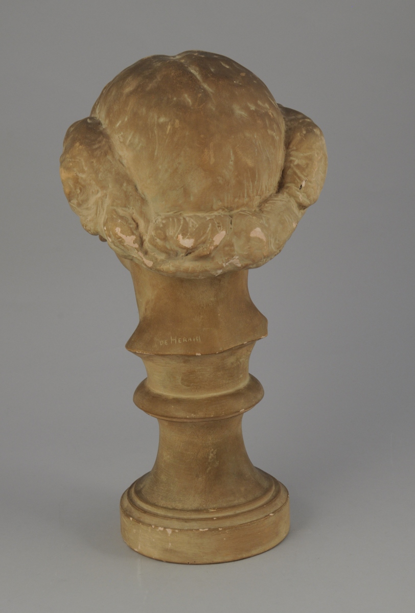 Divorcée, en 1914, du peintre et sculpteur François de Herain, dont elle eut un fils, Eugénie Hardon, qui se fait appeler Annie, devient la maitresse du vainqueur de Verdun, Philippe Pétain. Elle l'épouse en 1920, et devient aux yeux des Français la Maréchale Pétain. Ce buste inédit réalisé par son premier mari, la montre souriante, dans la fleur de l'âge.