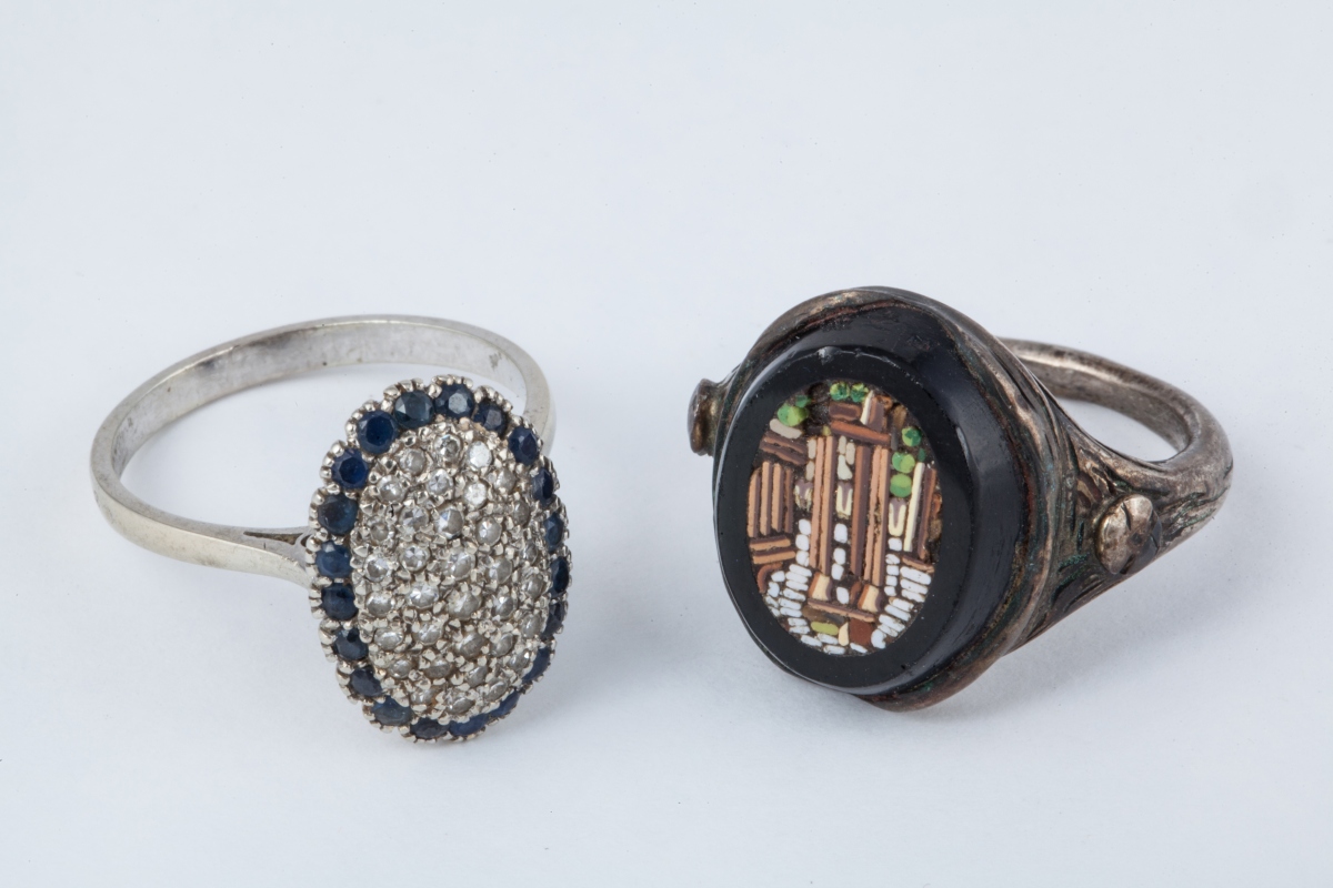 Joint: BAGUE en argent, le chaton de forme ovale orné d'une micro mosaïque. Taille 57.