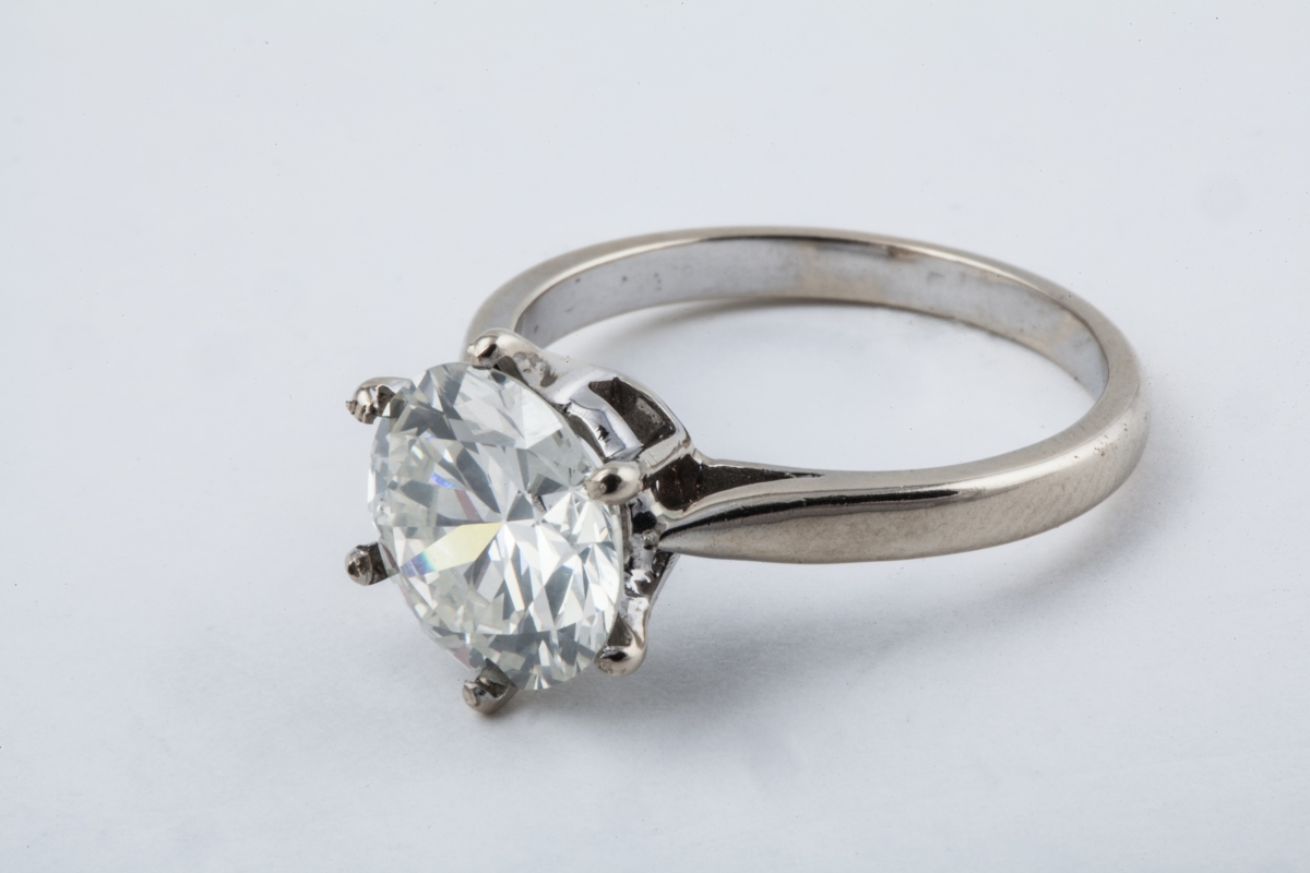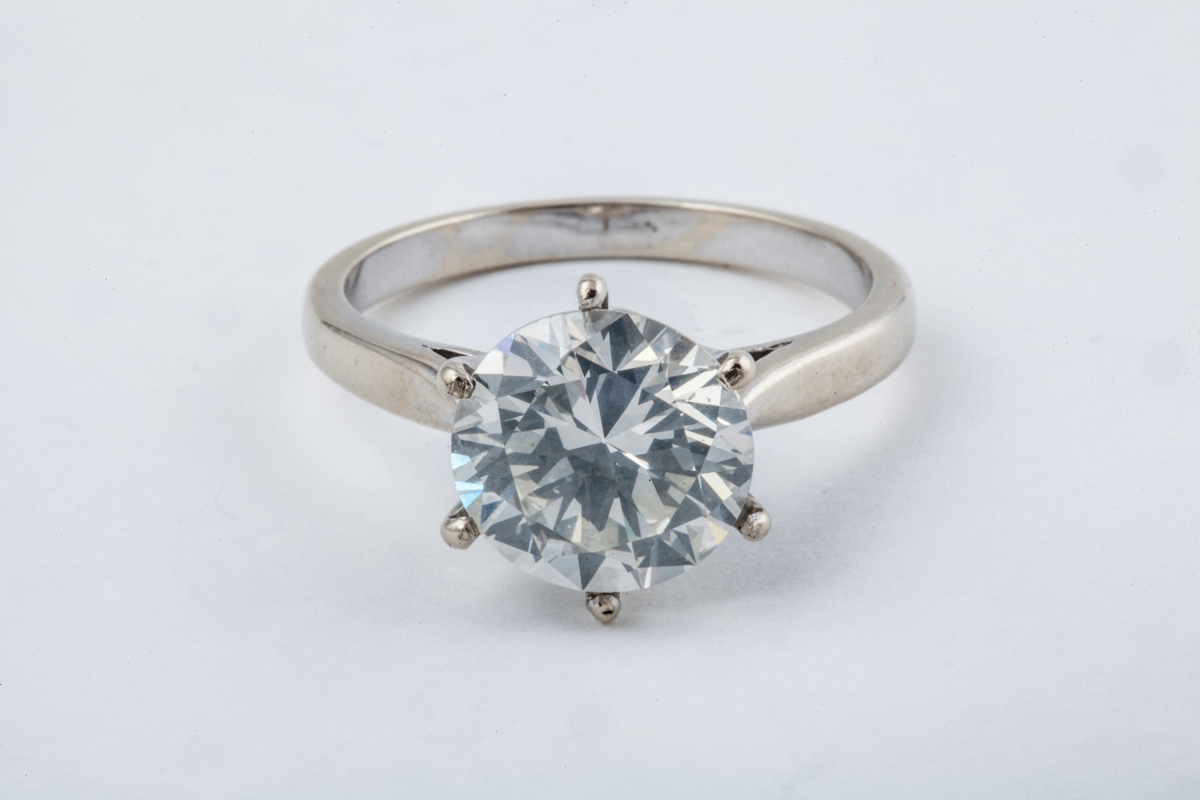 BAGUE en or gris 18K, sertie d'un diamant solitaire de forme ronde et de taille brillant, pesant 3,78 ct.