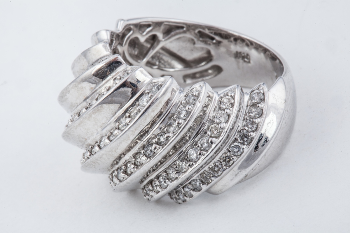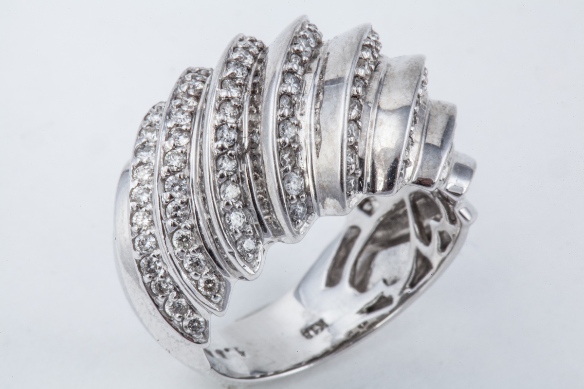 BAGUE JONC godronnée à mouvement en or blanc, sertie de 100 DIAMANTS taille moderne d'environ 1 carat.