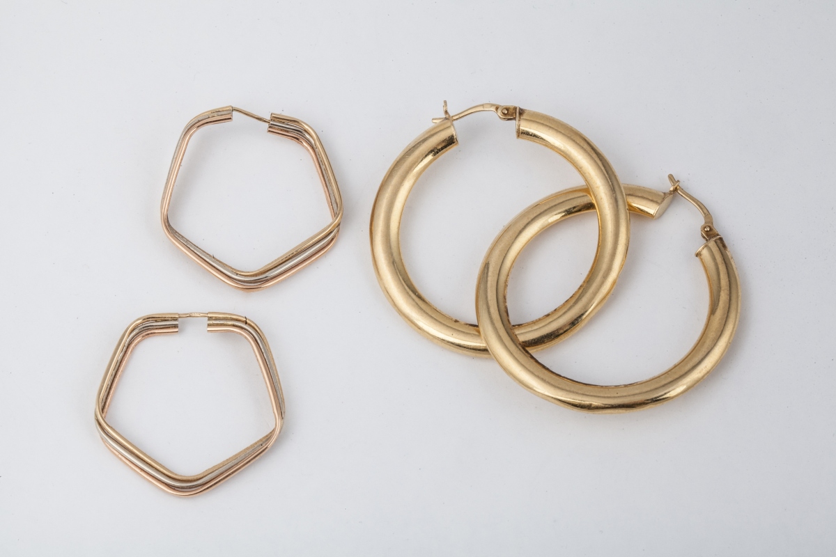 2 PAIRES DE BOUCLES D'OREILLES en or jaune. Une en or creux et l'autre façon trois or.