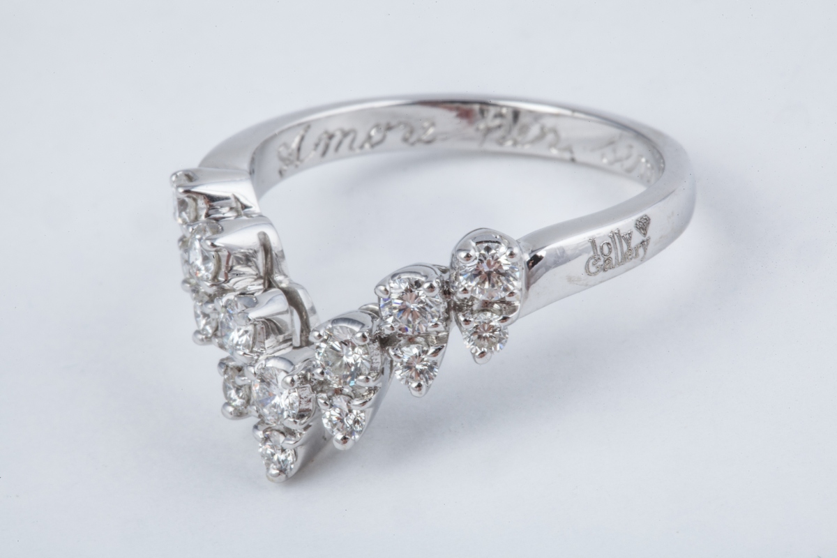 BAGUE chevron en or gris, sertie de diamants ronds de taille brillant.