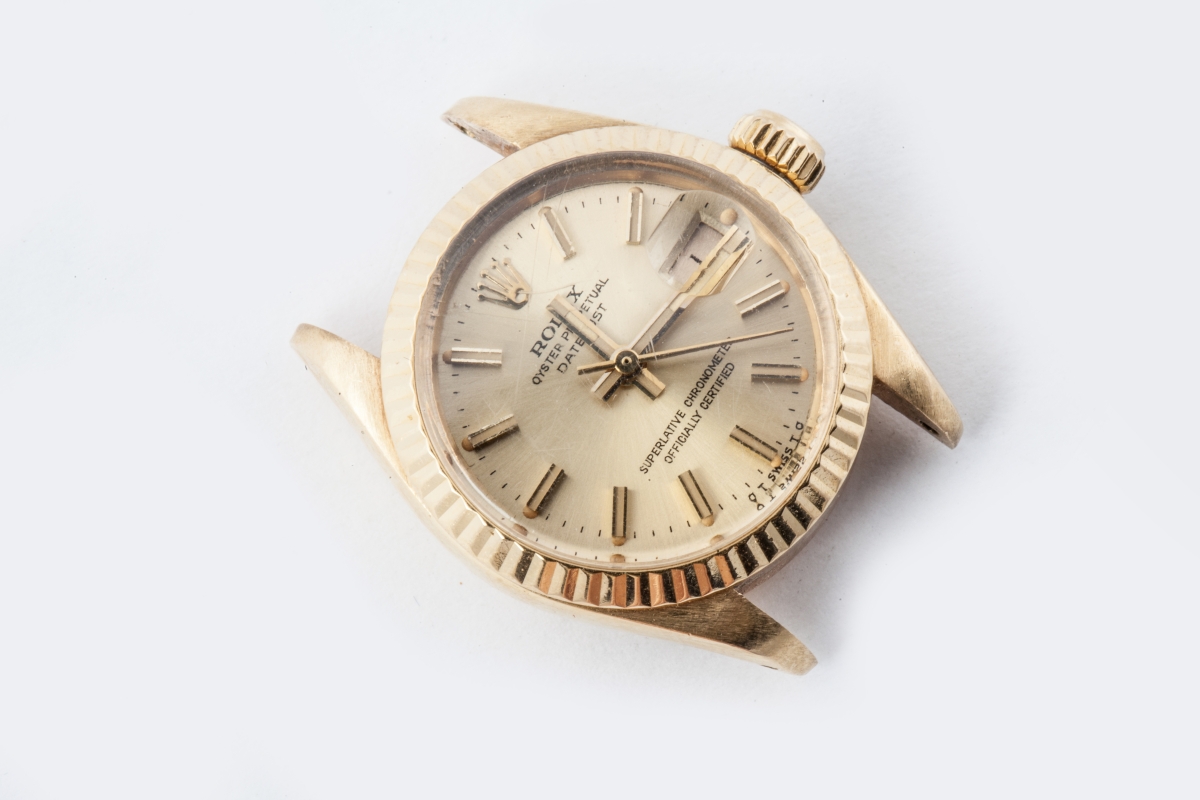 ROLEX. MONTRE DE BRACELET, de dame, en or jaune, index bâtonnets, trotteuse centrale, guichet dateur à trois heures.