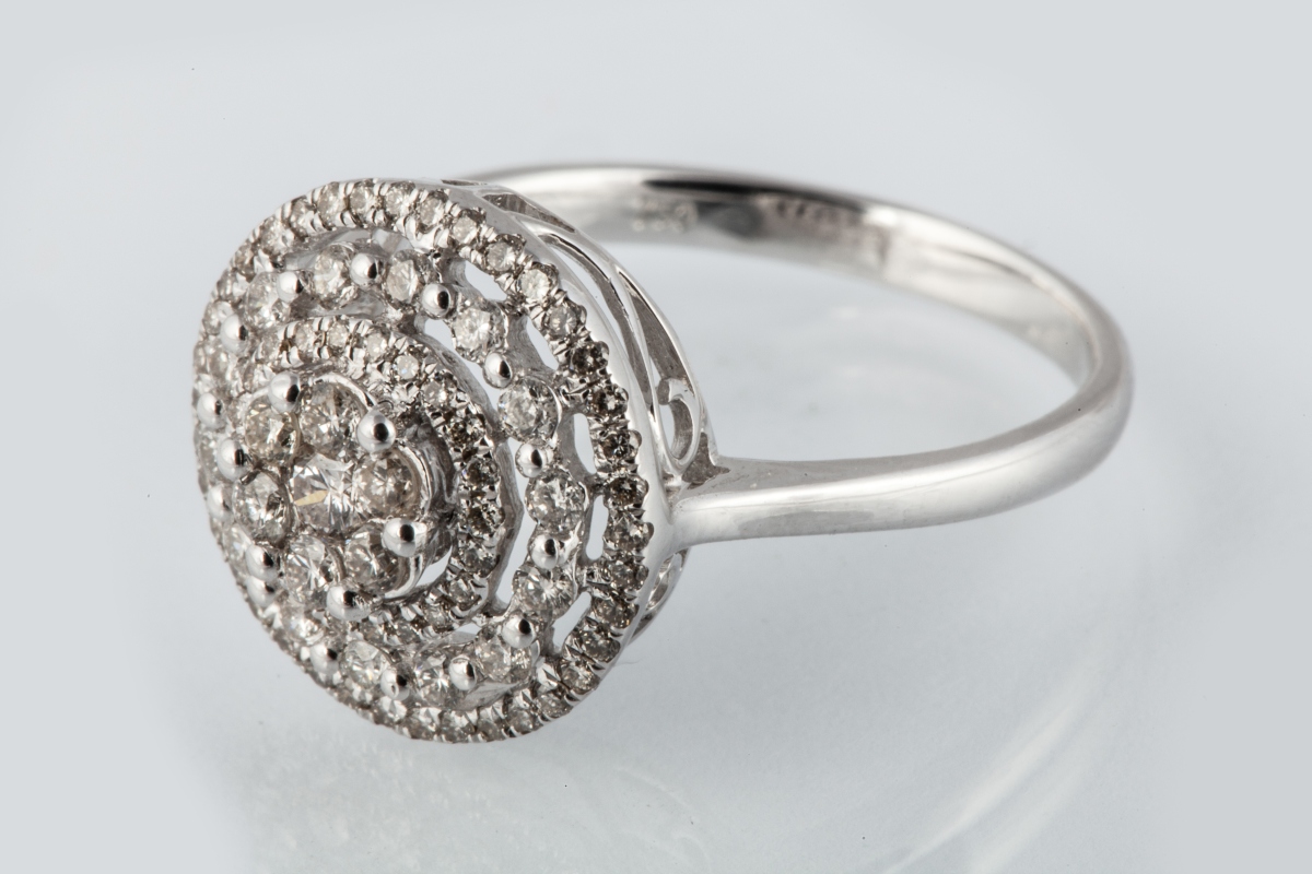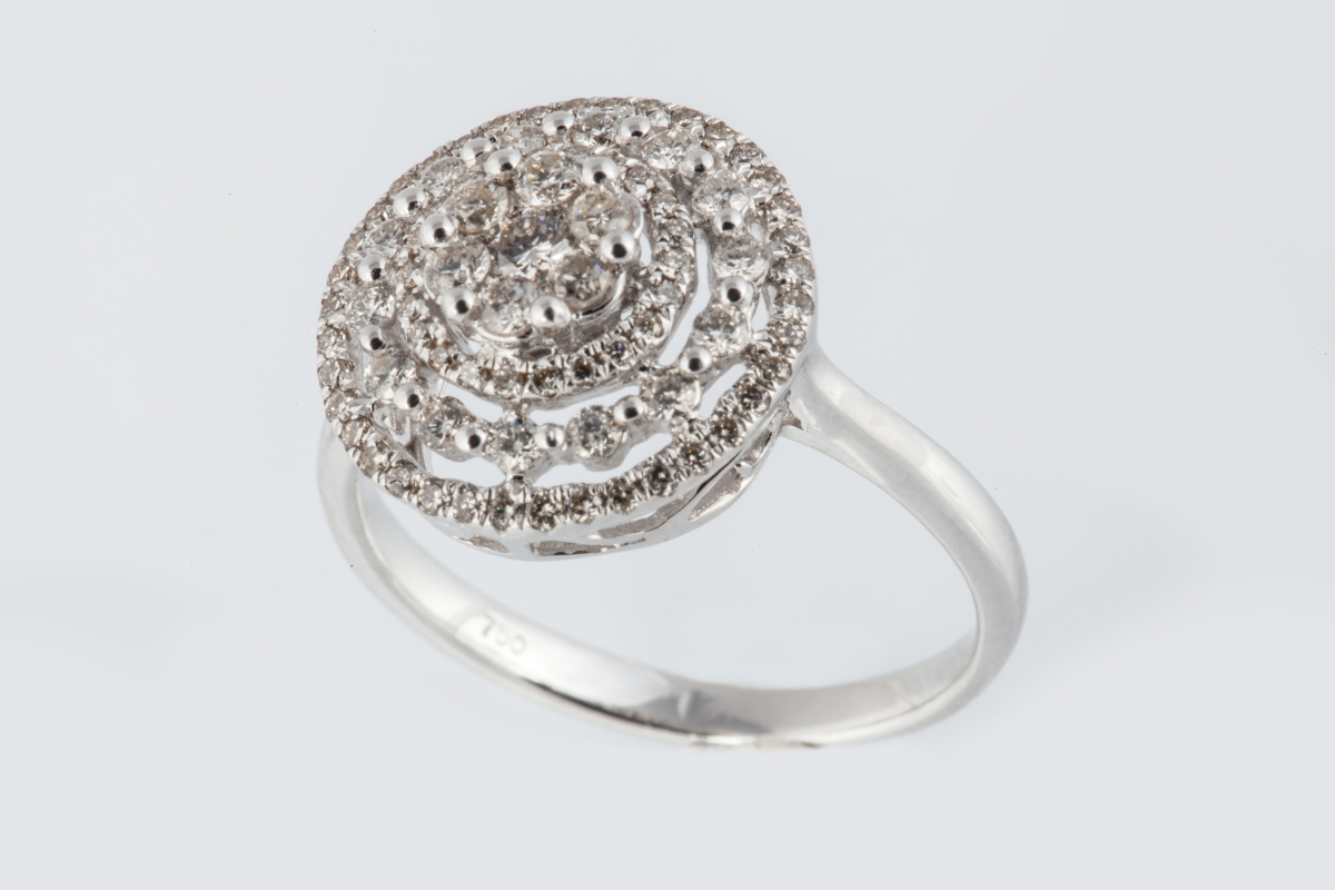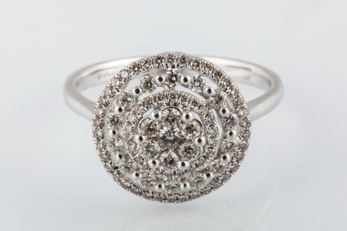 BAGUE de forme ronde en or blanc ajouré. Elle est sertie de 81 DIAMANTS blancs taille moderne de 0,60 carat environ.