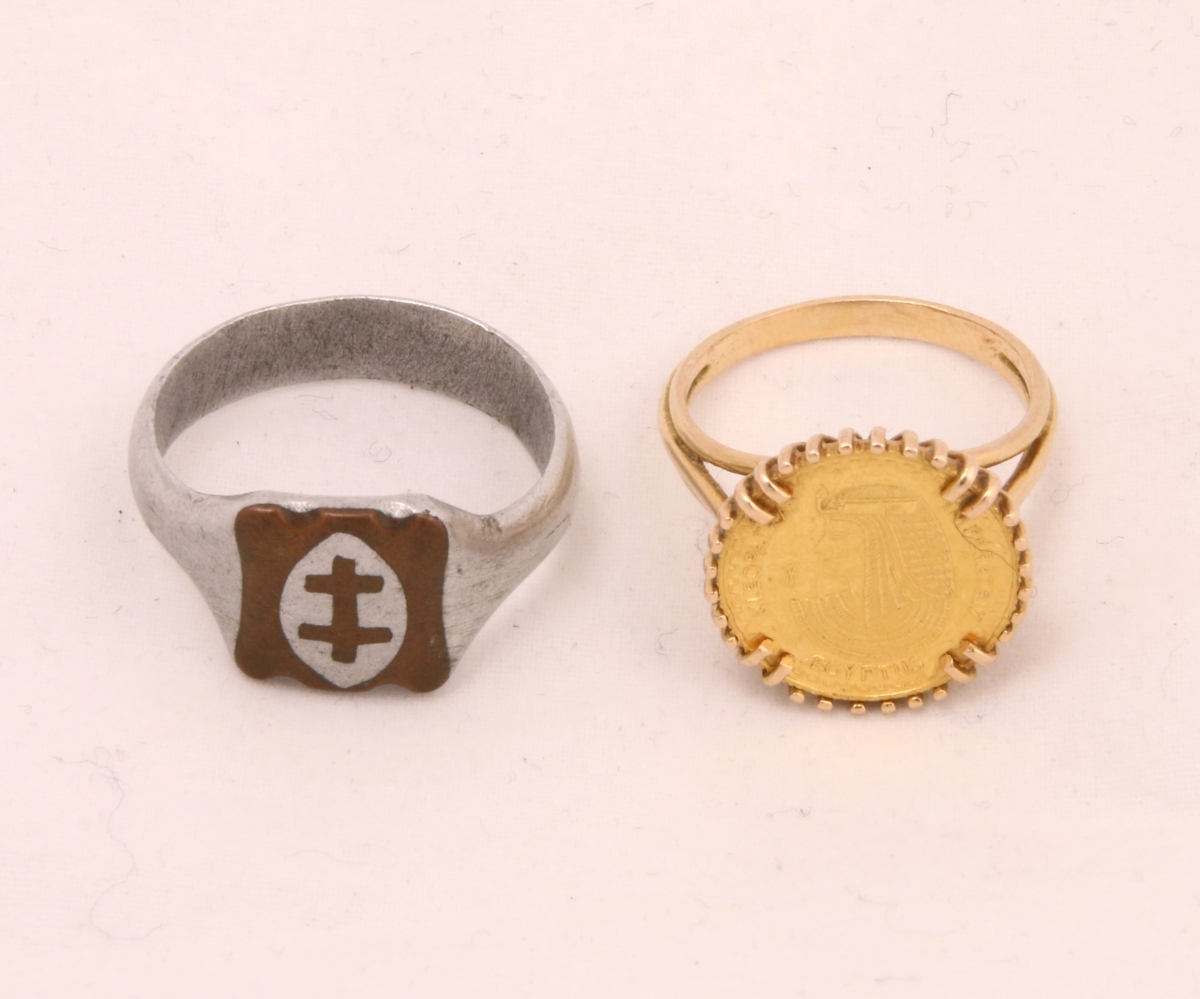 JOINT : BAGUE en étain orné d'une croix de Lorraine.