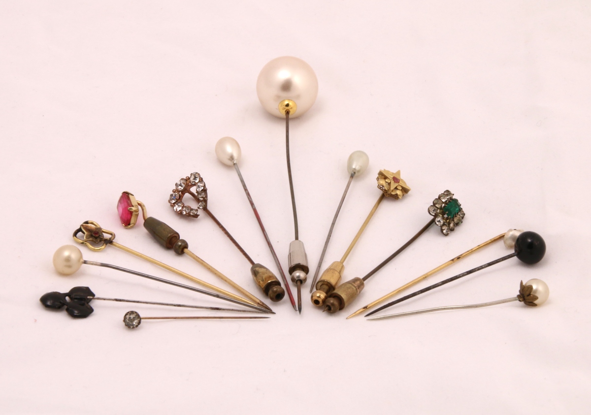 JOINT: 14 ÉPINGLES à CRAVATES ou à CHAPEAU fantaisies.