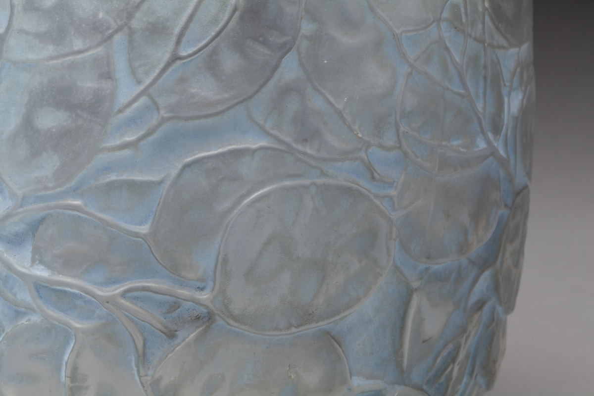 LALIQUE. VASE AUX MONNAIES DU PAPE en verre satiné.