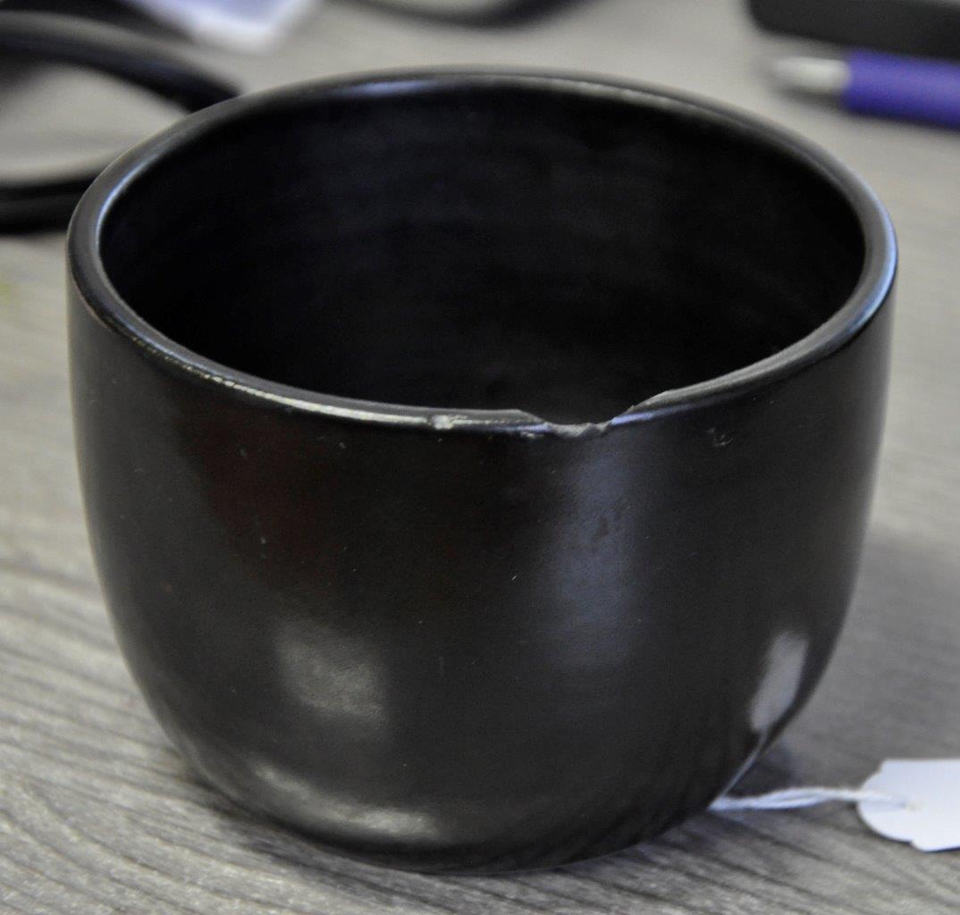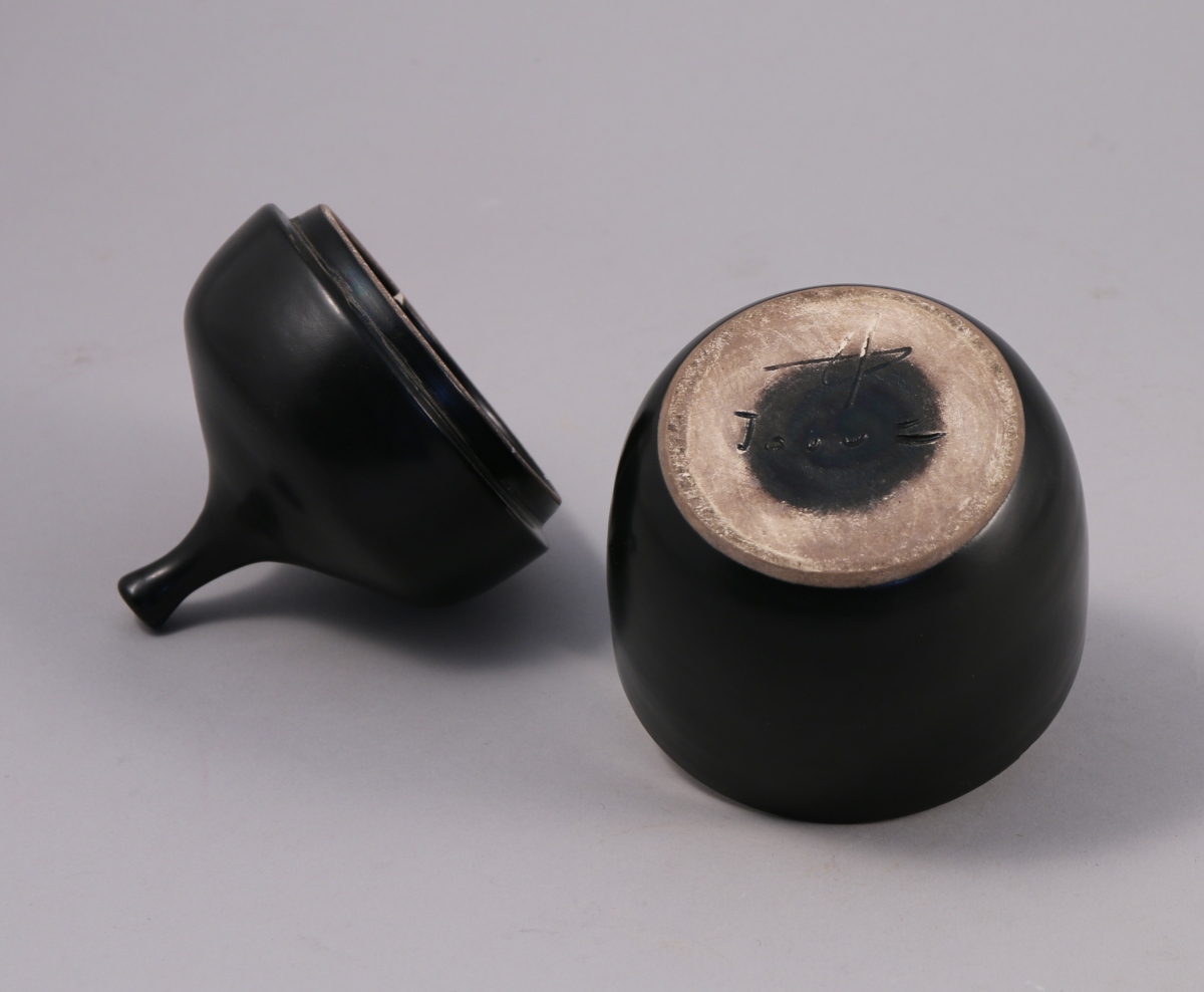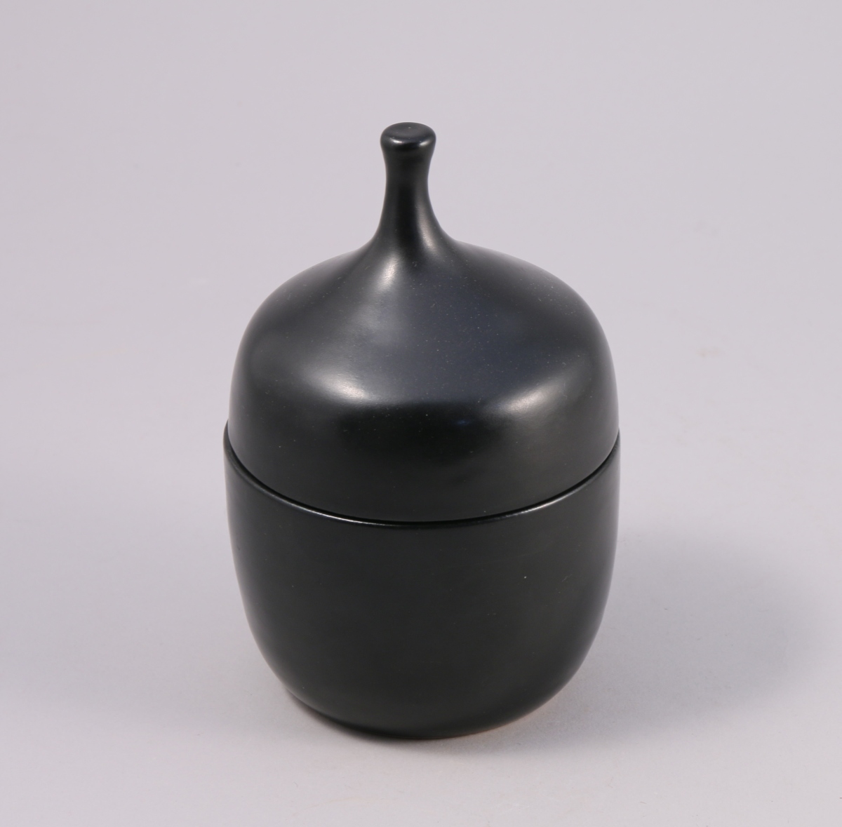POT COUVERT piriforme en céramique émaillée noir. Prise éfilée. Signé et monogrammé en creux sous la base.