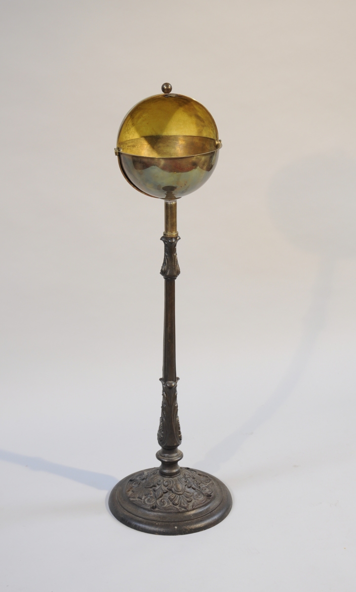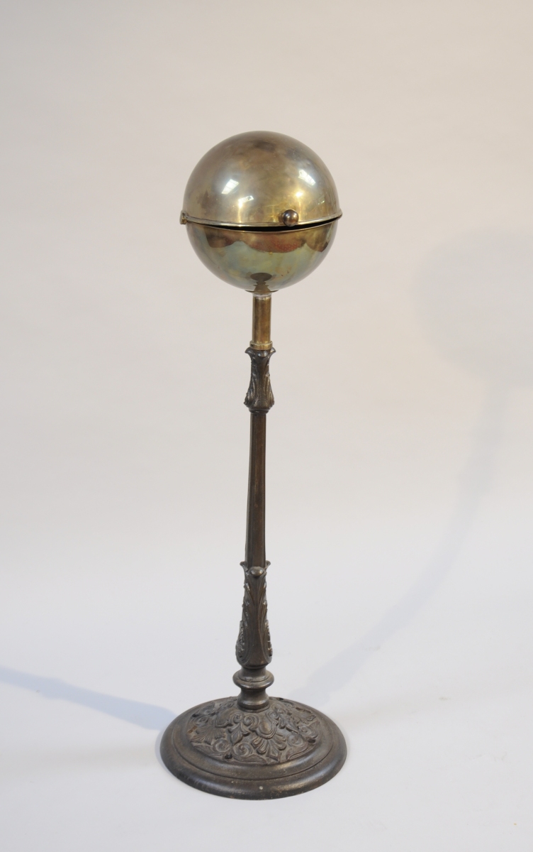 BOULE DE BISTROT en laiton argenté. Marquée "Café de la Paix". Socle-monture en fonte de fer.